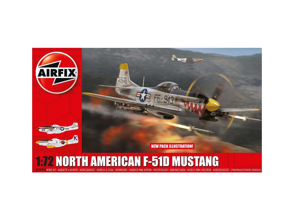 Plastikový model Airfix A02047A – americká stíhačka North American F-51D Mustang v měřítku 1:72 ke slepení. Rozpětí 156 mm, 72 dílků, stavební obtížnost 1. Balení obsahuje polepy pro 2 verze.