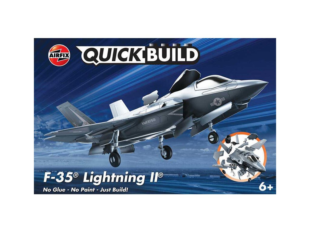Plastikový model Airfix Quick Build J6040 – letadlo Lockheed F-35B Lightning II. Stavebnice obsahuje 38 dílků, délka 213 mm, rozpětí křídel 260 mm, obtížnost 1.