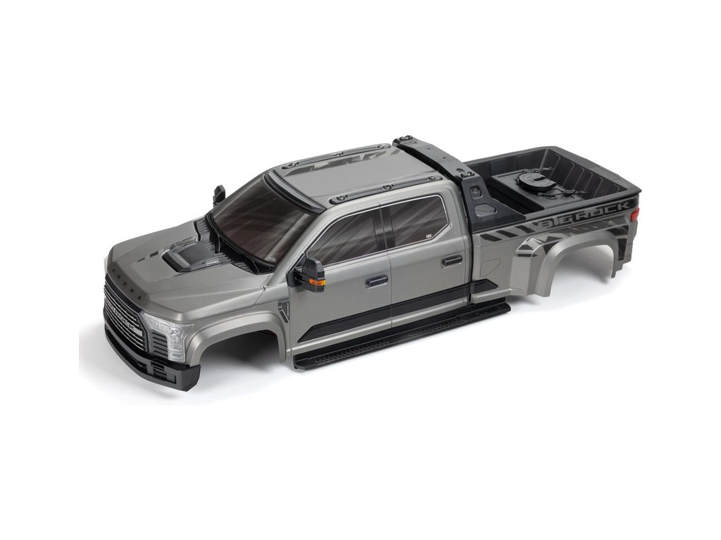 Náhradní díl pro RC modely aut Arrma 1/7 BIG ROCK 6S 4X4 BLX Monster Truck RTR: karosérie černá. Silný a pružný polykarbonát, zbarvení Gunmetal pro poutavý vzhled, aplikované kvalitní obtisky pro větší detail a realismus.