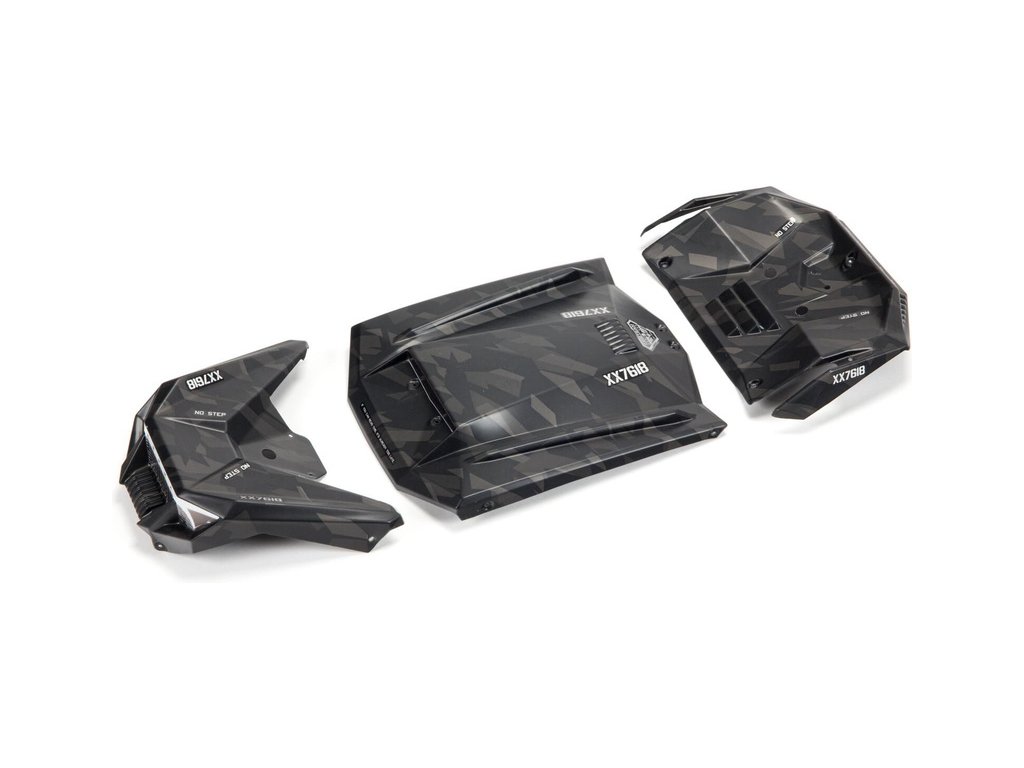 Náhradní díl pro RC model auta Arrma Fireteam 6S BLX: Přední, zadní a střešní panel karoserie. Hotové, nabarvené.