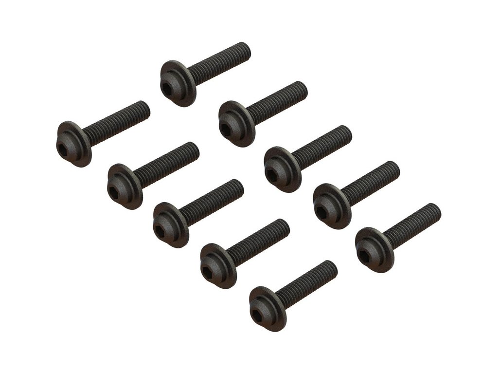 Náhradní díl pro RC modely aut Arrma: šroub imbus M4x18mm BH s přírubou (10 ks). Půlkulatá hlava s přírubou.