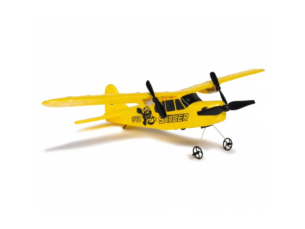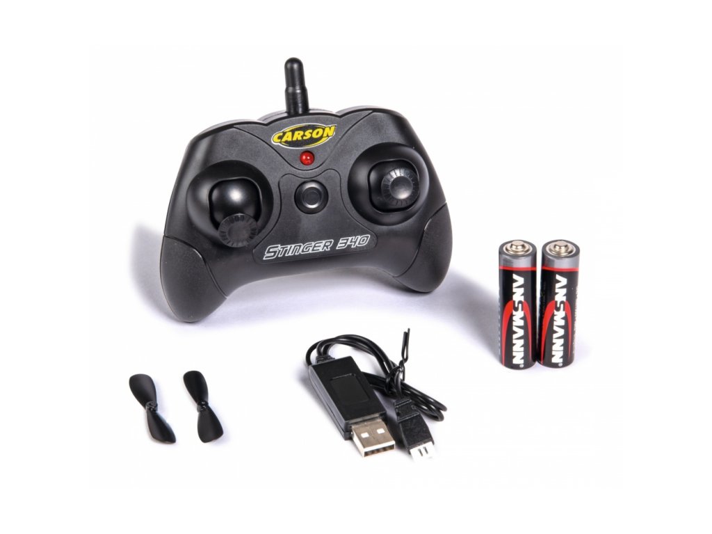 Se Stingerem 340 představuje CARSON nový model za výbornou cenu. Tento nový model je vyroben z téměř nezničitelného Flexiporu a je tedy ideální pro začátečníky. Jeho inteligentní gyroskopická elektronika činí Létání jednodušší od první minuty. Dvoumotorový kluzák je ovládané systémem dálkového ovládání 2,4 GHz bez rušení. Ten Li-Po baterie v balení poskytuje cca 20 minut zábavy při létání. Ten 100% kompletní dodávka zahrnuje vše, co každý pilot, ať už je velký nebo malý, ocení. Kupte, nabíjejte, létejte – bavte se se svým Stingerem 340 od CARSON.
