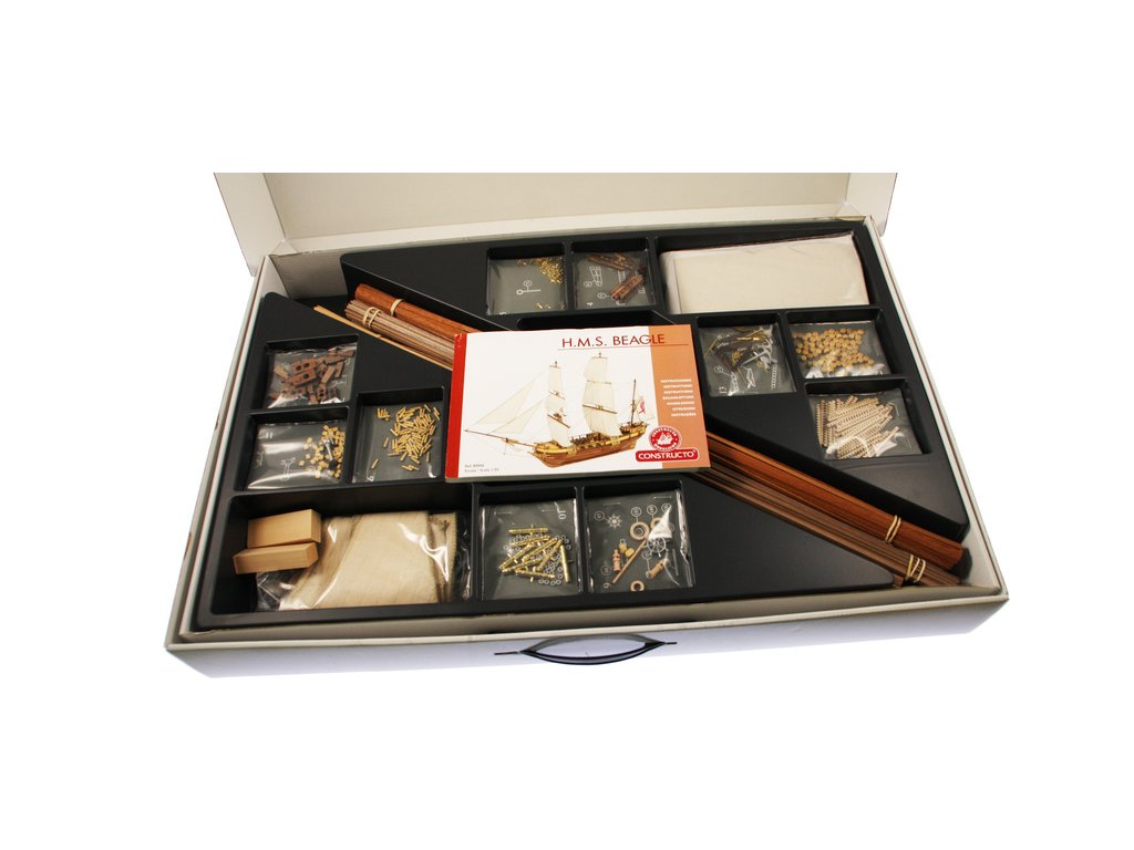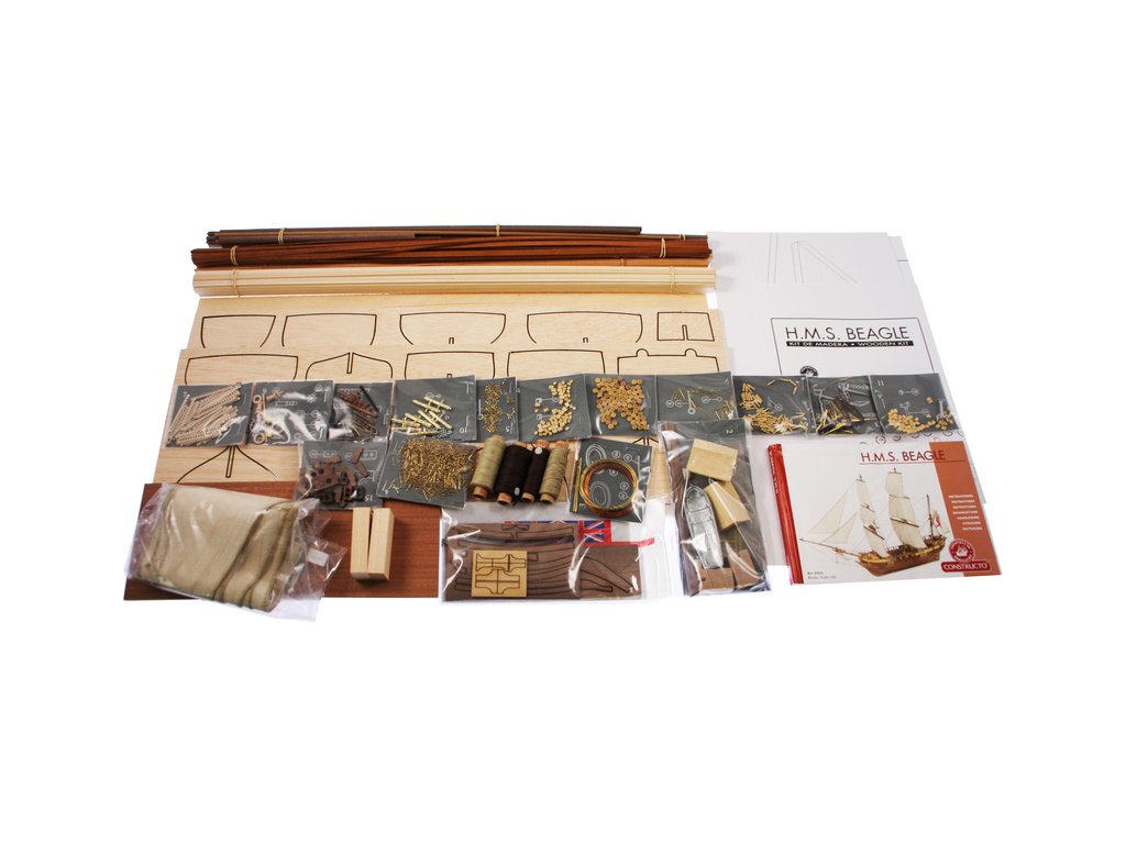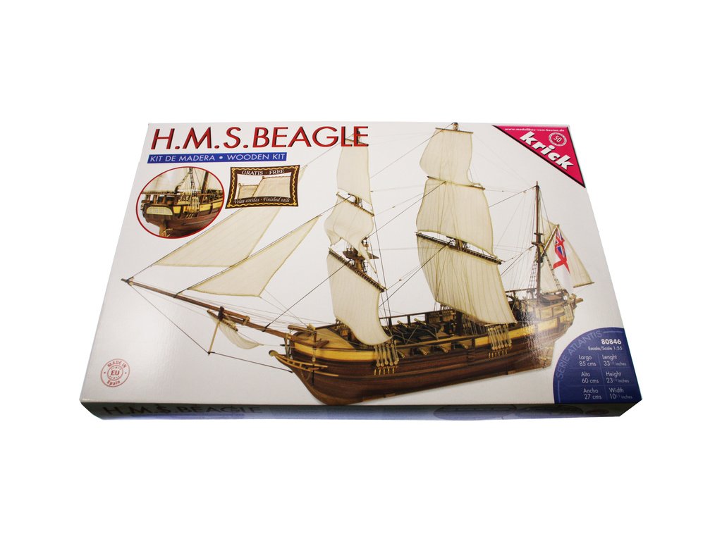 Stavebnice neplovoucího modelu historické plachetní lodi H.M.S. Beagle z roku 1820 v měřítku 1:55. Briga britského královského námořnictva byla postavena loděnicí Woolwich na Temži. Náklady na stavbu činily téměř 8 000 liber. V roce 1825 se jako průzkumná loď zúčastnila 3 výzkumných expedic, Na druhé expedici pod velením kapitána Roberta FritzRoye byl na palubě také Chales Darvin. Na této cestě získal Darwin znalosti, ze kterých později rozvinul svou evoluční teorii o původu druhů.