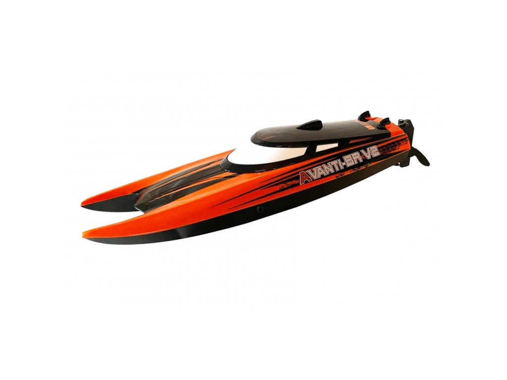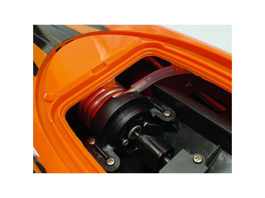 Motor a regulátor tohoto modelu je vysokovýkonný a chlazený vodou. Model je zapouzdřený a je chráněný proti stříkající vodě, či potopení. Pokud se model při jízdě otočí dnem vzhůru, stačí jen prudce přidat plyn, model se vrátí zpět a vy můžete pokračovat v jízdě. Model je navržen pro jízdu ve vysoké rychlosti a umožnuje opravdu skvělé manévrovací schopnosti. Maximální rychlost lze omezit na 50% pro děti. 44 cm dlouhý člun je propracován do nejmenších detailů a je ideální pro malé vodní nádrže, řeky a jezera. Lze velmi jednoduše ovládat z vysílače, který poskytuje komfort a maximální rychlost reakce, nezarušitelný přenos signálu 2,4GHz. Extrémně silný vodou chlazený střídavý motor, silný akumulátor a funkce automatického otočení zpět při převrácení jsou velké výhody tohoto modelu. Zatáčení je ovládáno kormidlem se samostatným servem a proto model v zatáčkách neztrácí rychlost. Plně proporcionální (plynulé) ovládání jízdy a zatáčení! Model má i DEMO režim, kdy po stisku tlačítka sám provede 2x "8".