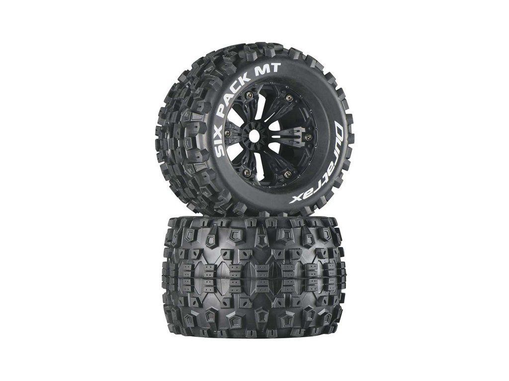 Kompletní kola Duratrax Six Pack 3.8" MT pro RC modely aut. Disk má černou barvu, tvrdost směsi pneumatiky je CS - sportovní směs střední.