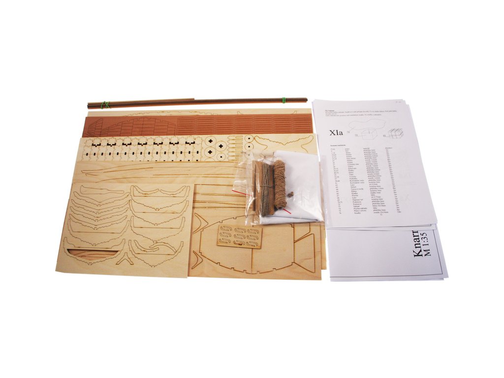 Stavebnice makety Vikingské lodi Knarr z roku přibližně 1030 v měřítku 1:72. Délka modelu lodi je 220mm, stavba převážně ze dřeva s drobnými doplňky, součástí je stavební plán a pokyny s mnoha podrobnými obrázky.