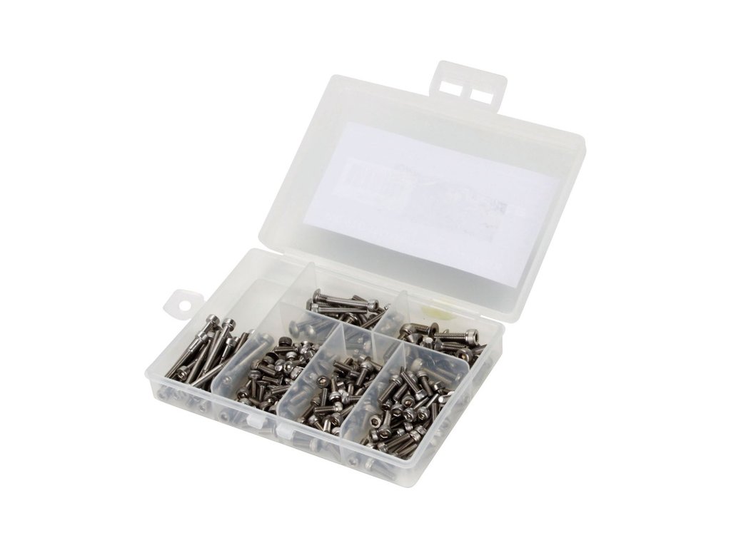 Dynamite sada celkem 189 ks nerezových šroubů, matic a podložek pro RC modely aut Traxxas E-Revo 1:16. (lze použít i pro Slash a Summit 1:16) Materiál - nerez ocel T-304 (ČSN 17 240).