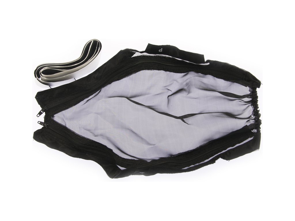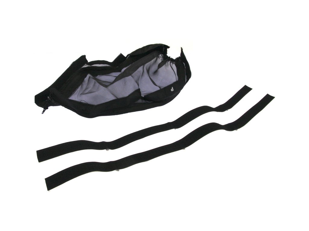 Nasaďte H-Speed protiprachový kryt seshora na podvozek a přehněte lemy na bok nebo pod šasí. Srovnejte a upravte polohu krytu a aplikujte přiloženou oboustrannou pásku suchého zipu přilepením na šasí. Pomocí zdrhovadla na obou stranách můžete protiprachový kryt odejmout.