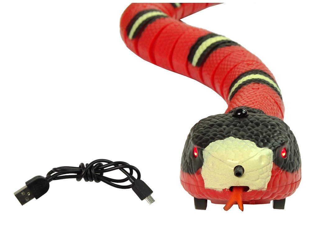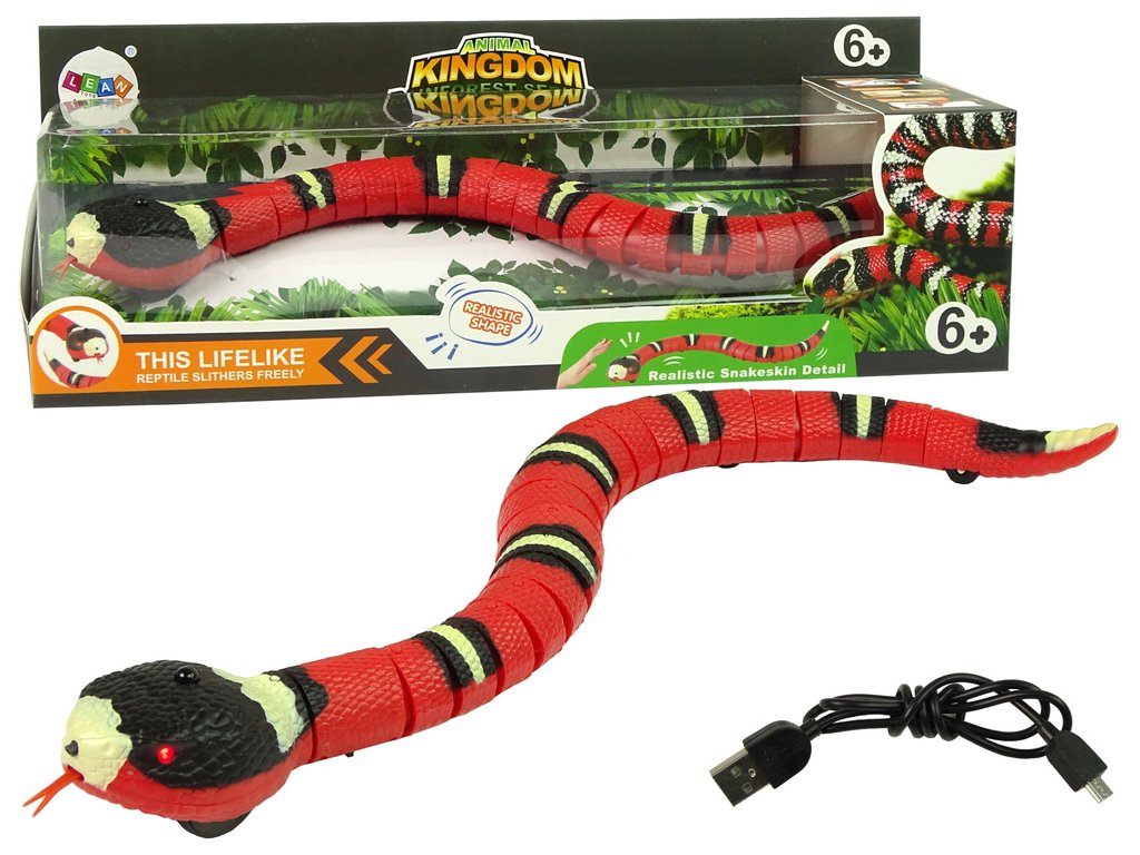 Připravte se na pořádnou dávku zábavy a legrace s realistickým interaktivním hadem s dotykovým ovládáním! Tento červeno-černý plaz působí jako živý – plazí se po zemi, vyplazuje jazyk, svítí a reaguje na pohyb ruky.