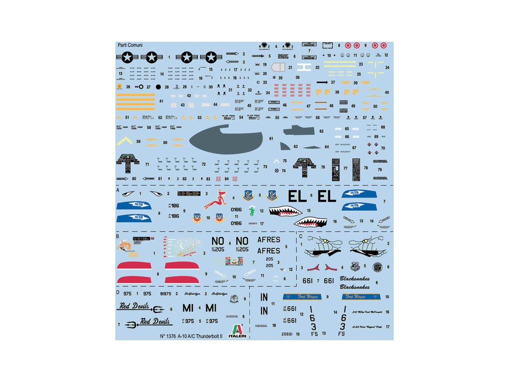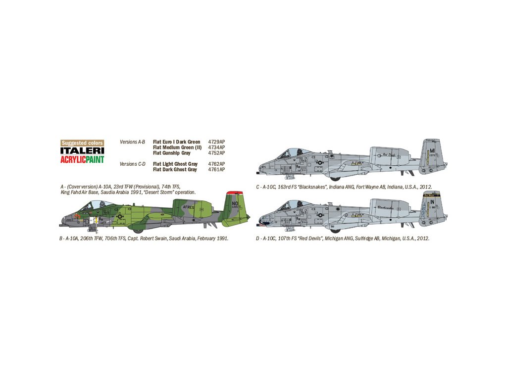 Plastikový model Italeri 1376 - letadlo A-10 A/C Thunderbolt ll "Válka v Zálivu" v měřítku 1:72 ke slepení. Délka modelu 226 mm, obtížnost 3. Balení obsahuje SUPER OBTISKY PRO 4 VERZE.