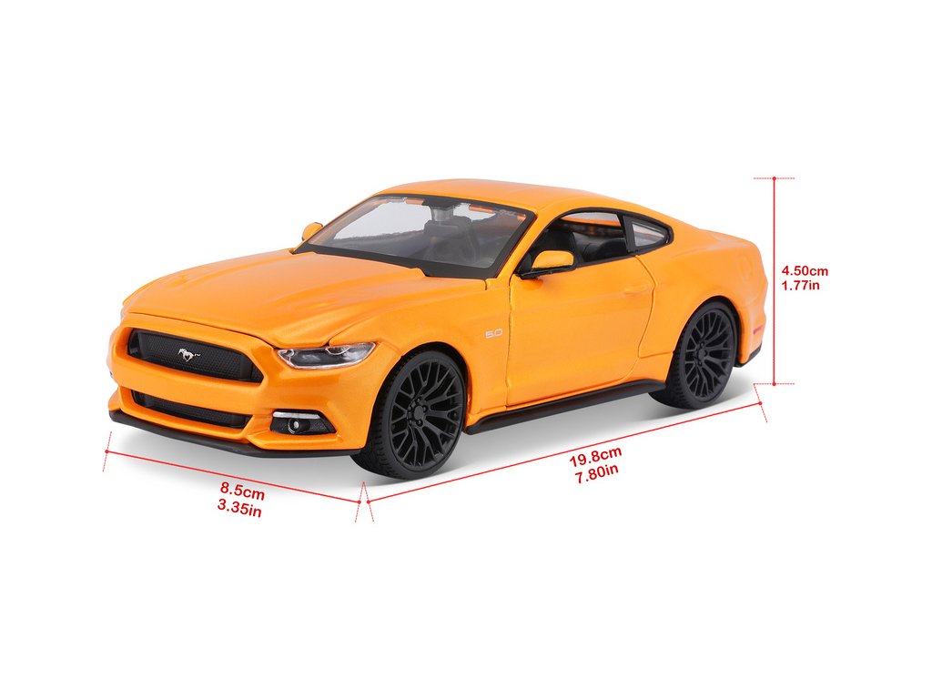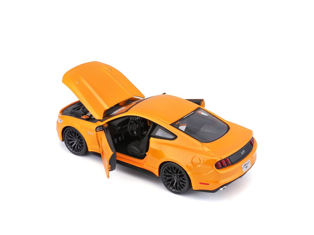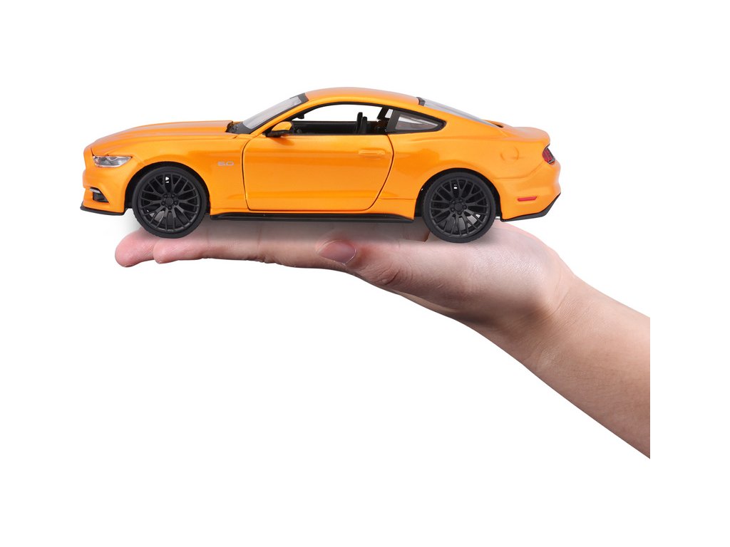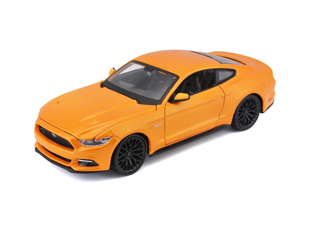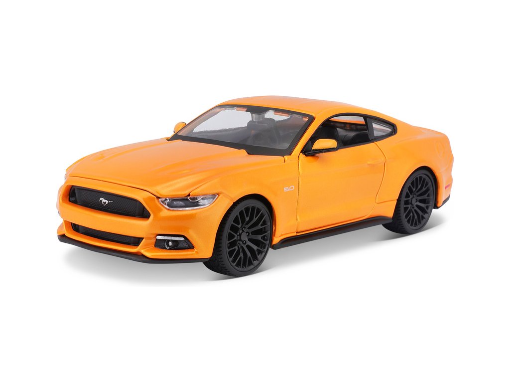 Kovový model auta 1:24 Maisto 31508 Ford Mustang GT 2015 nejen pro sběratele. Model je v detailním provedení a má otevíratelné dveře. Barva modelu je oranžová a je přibližně 19 cm velký.