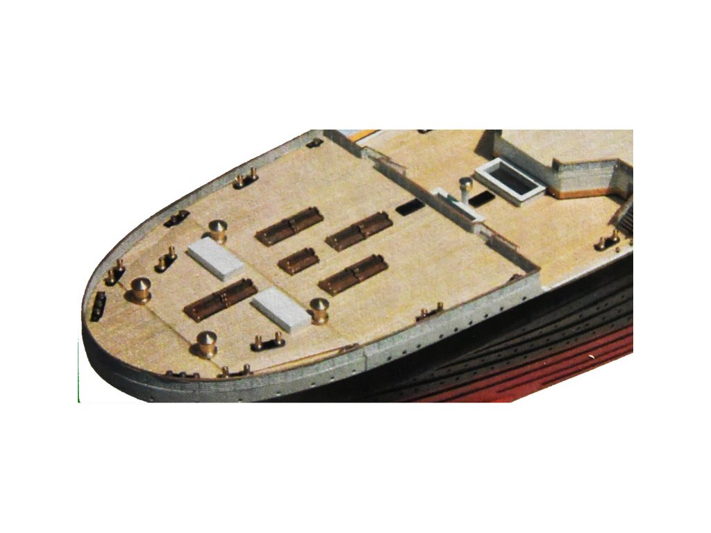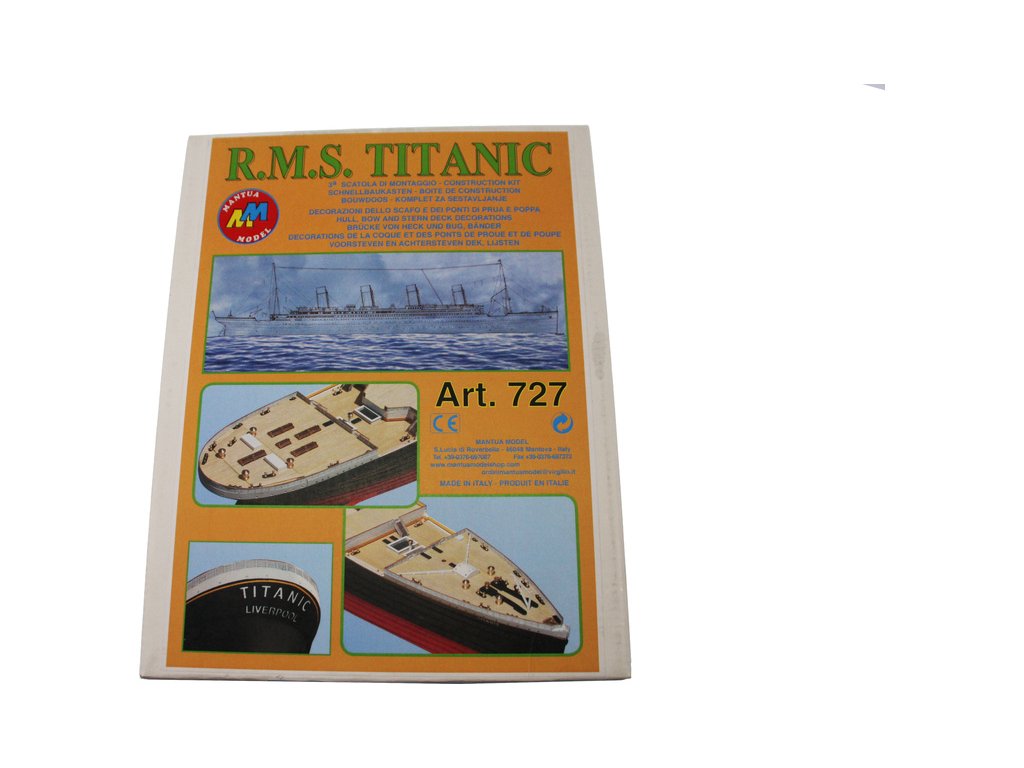 Mantua Model Titanic 1:200 sada č.3 kit v měřítku 1: 200 a délce 1350mm. Titanic je vlajkovou lodí řady Mantua Model. Bylo vybráno měřítko 1: 200 s rozměrem trupu 1350 mm na délku a 140 mm na šířku pro možnost podrobného zpracování detailů. Titanic je dodáván ve dvou verzích statických nebo v provedení RC. Aby modelář měl svobodu volby, je konstrukce rozčleněna do 5 částí. Můžete si zakoupit kompletní sadu nebo jednotlivé sety podle vlastní potřeby. Sada se skládá z 5 částí, z nichž první je trup a přední a zadní paluba, druhá sada je balíček motorů pro instalaci funkčního rádiové ovládání, třetí sada jsou boční panely oken trupu, přídě a zádi, detaily a kování, čtvrtá sada je střední paluba včetně komínů a pátá je kompletní sada kování. Konstrukce je obecně z přepážek na kýlu s laserem řezanými a leptanými dřevěnými detaily. Součástí je anglický návod a foto detaily.