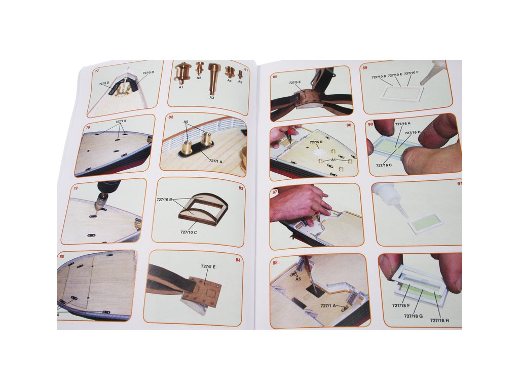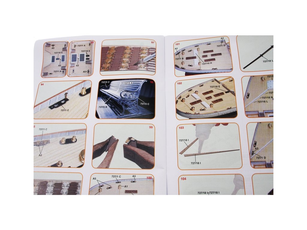 Set obsahuje kompletní sadu výkresové dokumentace modelu v měřítku 1:1 s obrázky jednotlivých detailů. Na výkrese jsou v měřítku nakresleny montážní sestavy, jejich kompletace a to včetně stěžňů a ráhen a způsob vázání lanoví. Vícejazyčný postup stavby rámcově upravuje logické sestavení jednotlivých komponentů.