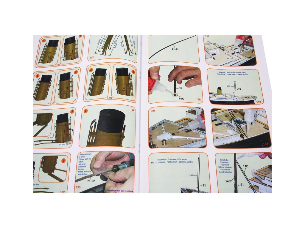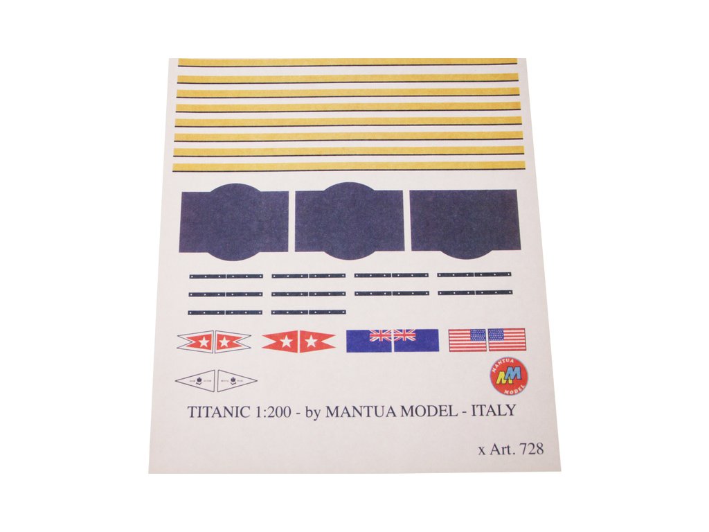 Mantua Model Titanic 1:200 sada č.4 kit v měřítku 1: 200 a délce 1350mm. Titanic je vlajkovou lodí řady Mantua Model, který se sestaví z 5 setů. Sada č.4 obsahuje nástavby střední části trupu, záchranné čluny,detaily a kování. Součástí je anglický návod a foto detaily.