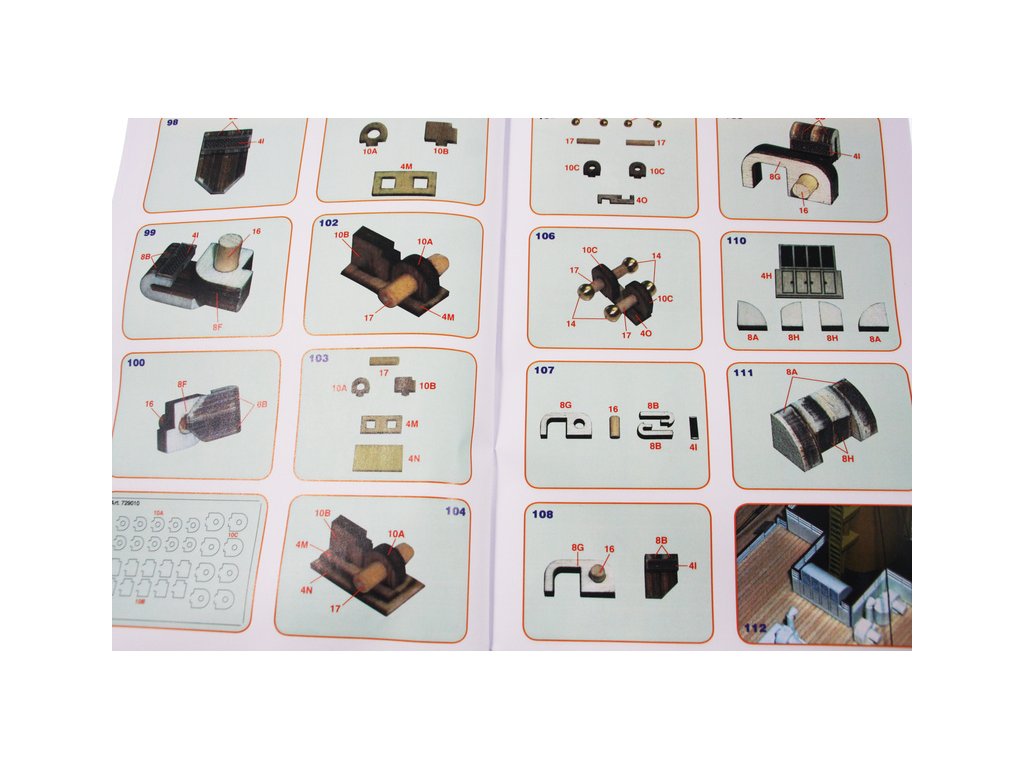 Set obsahuje kompletní sadu výkresové dokumentace modelu v měřítku 1:1 s obrázky jednotlivých detailů. Na výkrese jsou v měřítku nakresleny montážní sestavy, jejich kompletace a to včetně stěžňů a ráhen a způsob vázání lanoví. Vícejazyčný postup stavby rámcově upravuje logické sestavení jednotlivých komponentů.