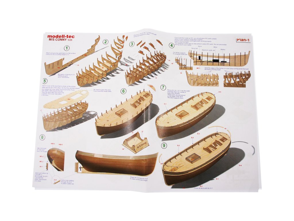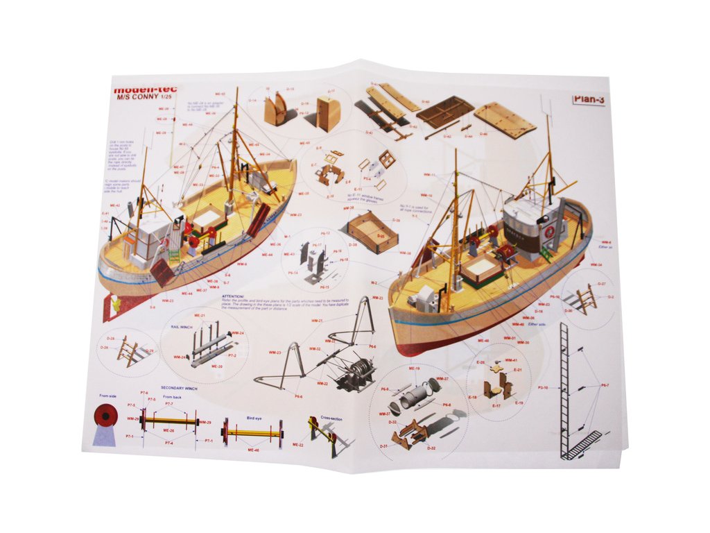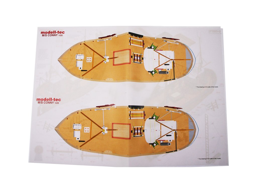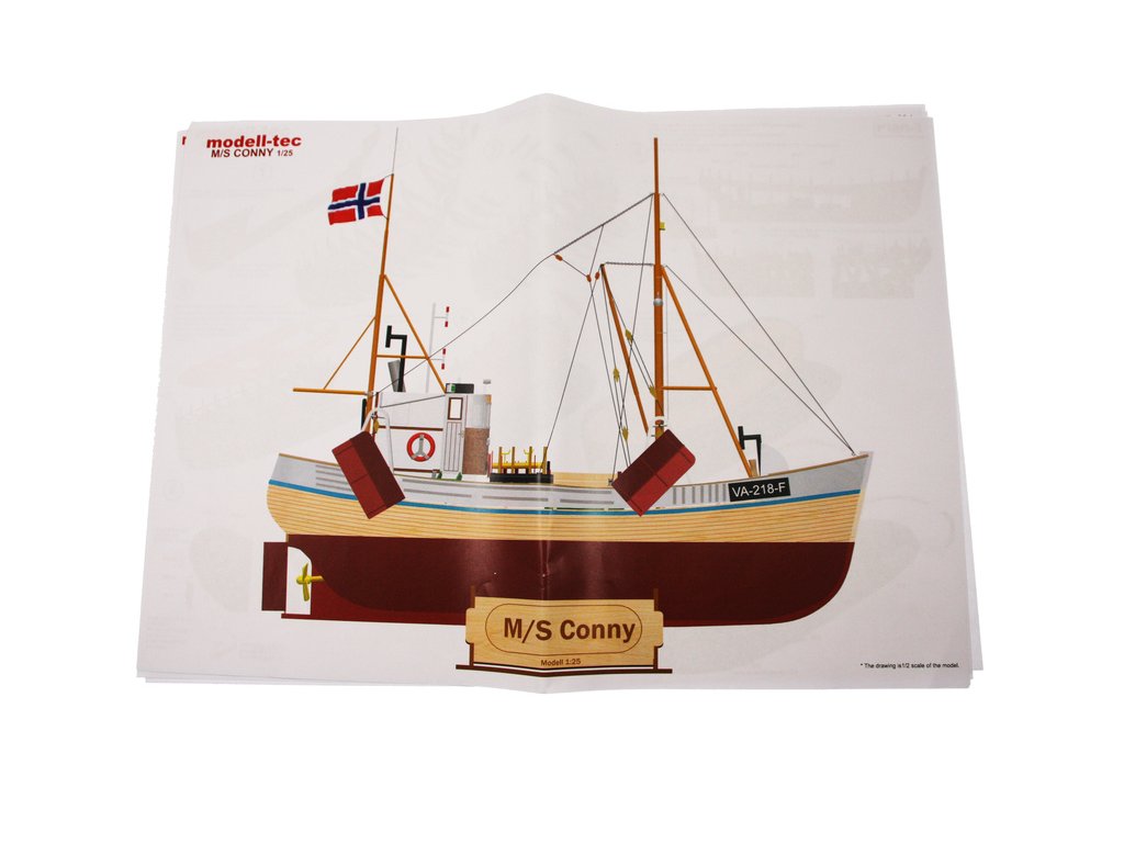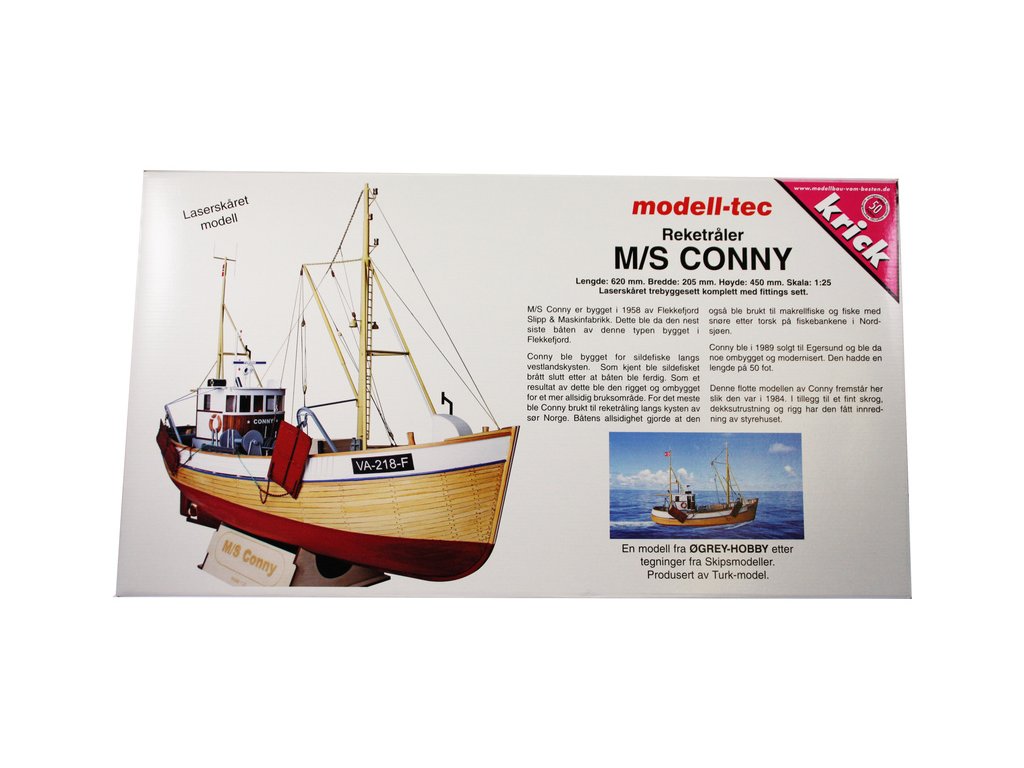 Stavebnice modelu lodi MS Conny kit, v měřítku 1:25. MS Conny je plavidlo lovící krevety u norského pobřeží. Loď byla postavena ve Flekkefjordu a několik let měla domovský přístav v Egersundu. Model této lodi od značky Modell-tec je detailně zpracován a obsahuje plně vybavenou kabinu.
