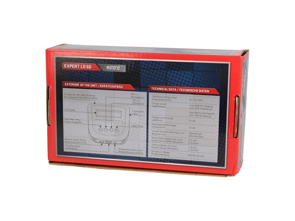 Expert LD 60 je multifunkční nabíječ a vybíječ určený pro široké spektrum akumulátorů používaných v RC modelářství. Díky výkonu 60 W a nabíjecímu proudu až 6 A poskytuje dostatek výkonu pro většinu běžných aplikací v kompaktním provedení.