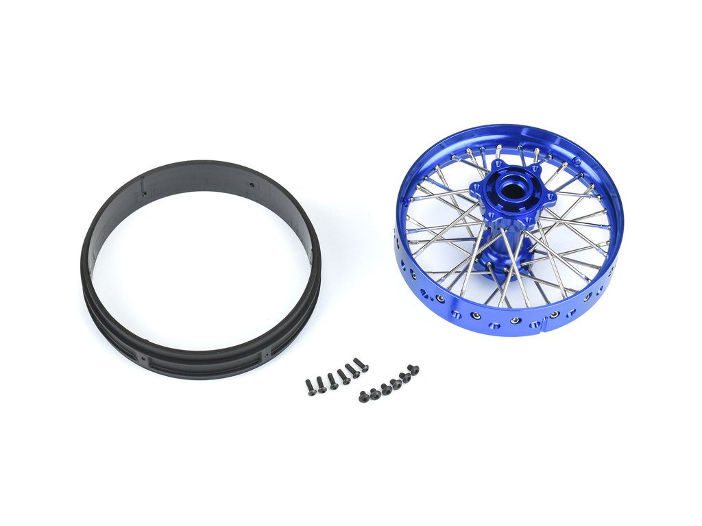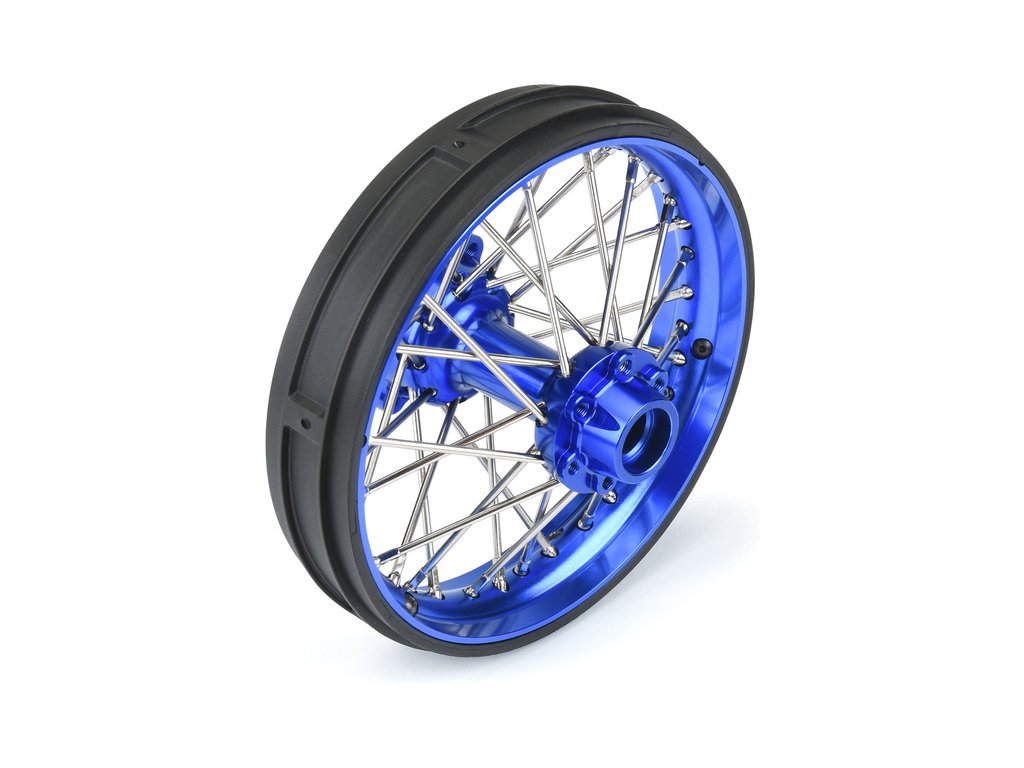 Tuningový díl pro RC model motorky Losi Promoto-MX: Pro-Line disk zadní Pro-Spec V2 Bead, hliník, modrý/modrý. Sestavený zadní disk s eloxovaným hliníkovým nábojem 6061 a ráfkem s pozinkovanými ocelovými paprsky. Určeno pro pneumatiky Pro-Line V2 Bead MX.