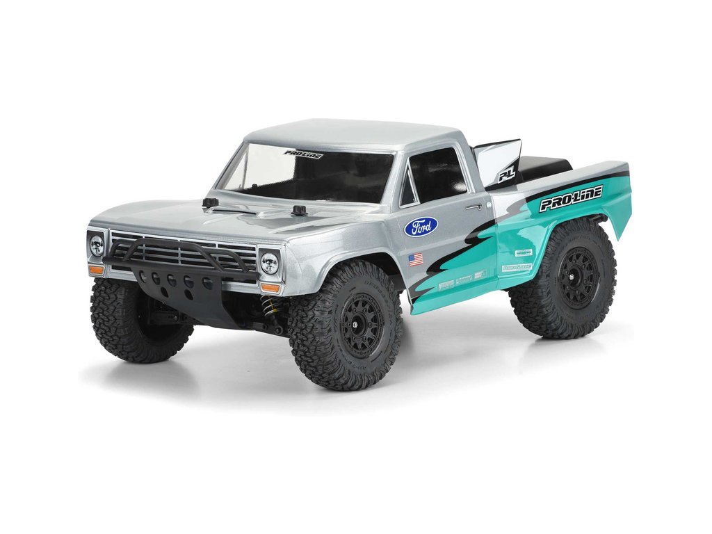 Licencovaná karosérie 1967 Ford F-100 je speciálně vyrobena pro RC modely aut Short Course. Karoserie Ford® z roku 1967 se vyznačuje ikonickou plochou přední mřížkou chladiče F-100 a širokými lemy blatníků, které reprezentují agresivní sklolaminátové vybouleniny, které se vyskytují na závodních strojích plné velikosti. Pro-Line zahrnul všechny detaily do vzhledu karoséérie pro vysoce detailní repliku. Připravte svůj Short Course Truck do terénu s novou karoserií 1967 Ford F-100!