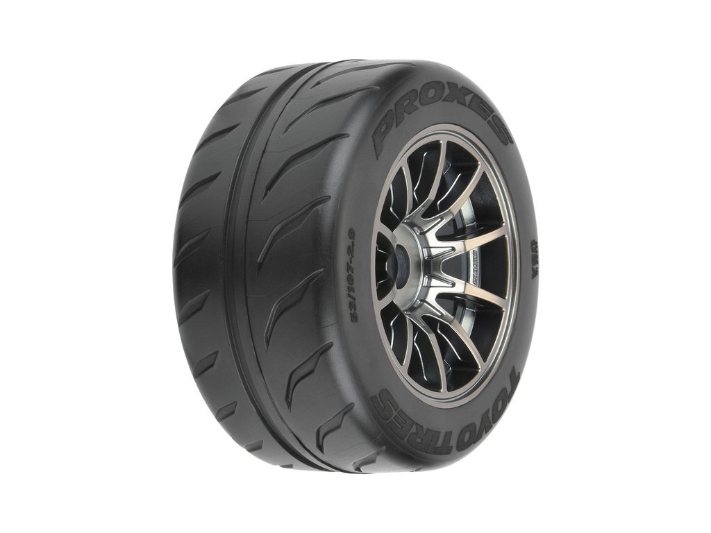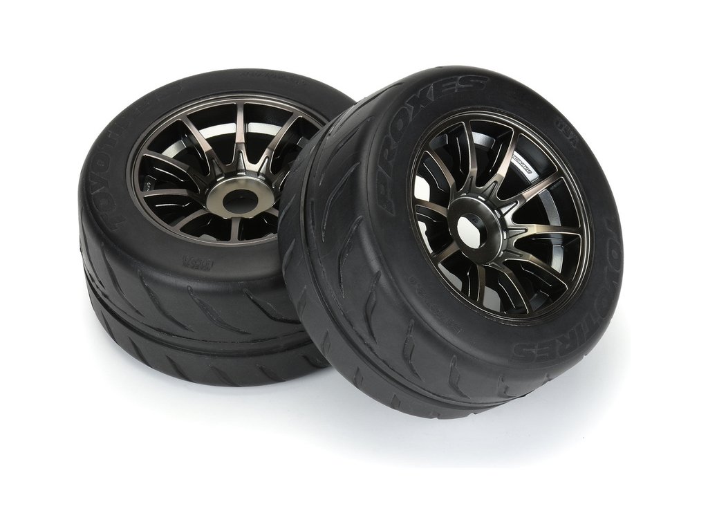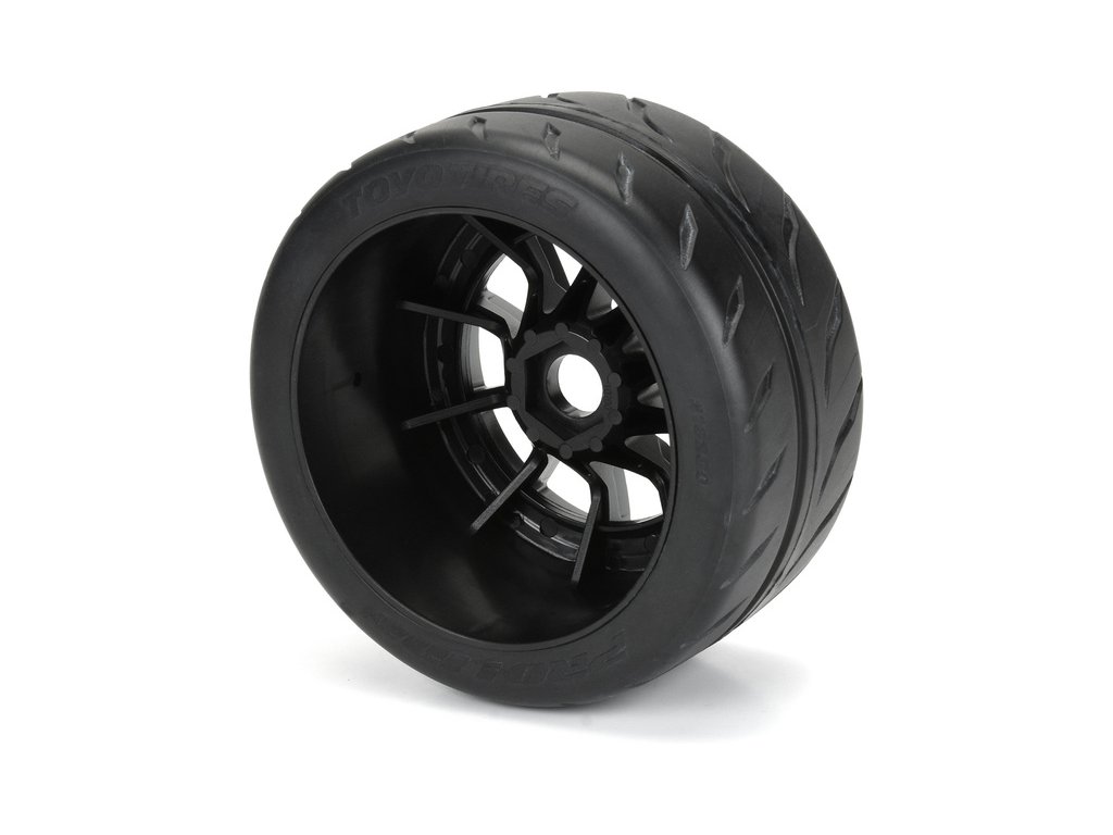 Kompletní kola Pro-Line pro RC modely aut 1:7. Rozměr ⌀107x53 mm. 10 paprskový disk Spectre. Licencované silniční pneumatiky Toyo Proxes R888R 2.9" BELTED, tvrdost směsi S3 (měkká). Unašeč je šestihran 17 mm. Vložka Closed cell.