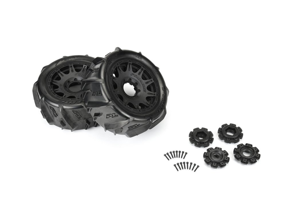 Pro-Line kolo kompletní přední/zadní, pneumatiky Dumont Paddle, disky Raid 5.7", náboje s šestihranem H24 černé (2 ks). Speciální vzorek běhounu ji předurčuje do vody, bláta nebo písku. Kola jsou vhodná pro RC auta X-MAXX® a KRATON™ 8S.