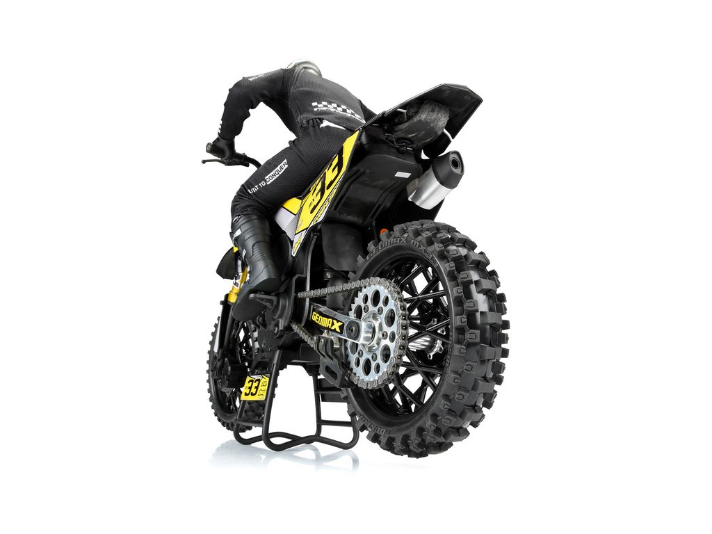 Doporučené příslušenství pro RC motorku Losi® Promoto-MX: Pro-Line kolo s pneumatikou Dunlop Geomax MX33 V2 Bead CR4 zadní, disk černý, s černým diskem. Licencovaná pneumatika od Dunlop Motorcycle Tires pro agresivní jízdu, zesílené paprsky disku pro větší tuhost a lepší ovladatelnost.