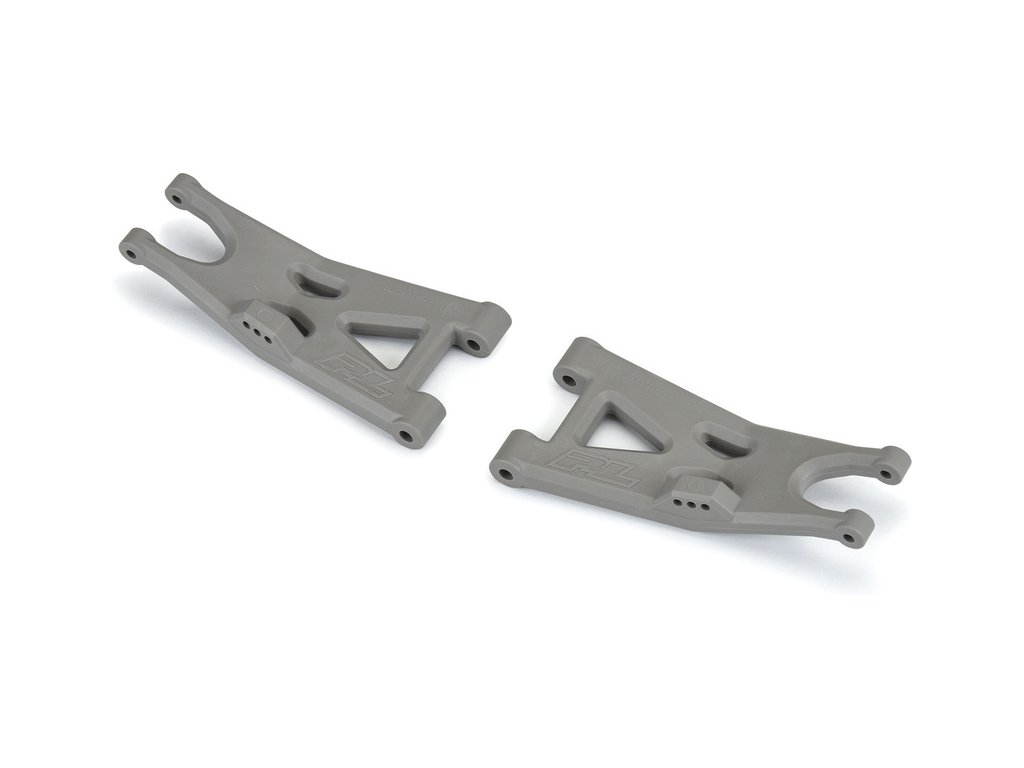Tuningová vysoce odolná a stylová Pro-Line ramena přední šedá pro RC modely aut Arrma 3S - Granite, Senton, Vorteks, (vč. Boost 4x2, Mega 550). Vyrobeno z pevného nylonu. Obsahují několik upevňovacích bodů pro tlumiče. Ramena jsou součástí série Bash Armor.