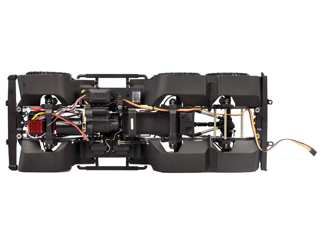 Kromě všech jízdních funkcí ovládá 2,4GHz 6-ti kanálový dálkový ovladač, který je součástí dodávky, také 2-rychlostní převodovku, uzávěrky diferenciálů a LED osvětlení. Ve verzi Pro poskytuje servo řízení sílu 25 kg. Celý model je voděodolný a odolá všem vnějším provozním podmínkám.