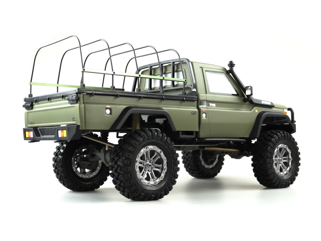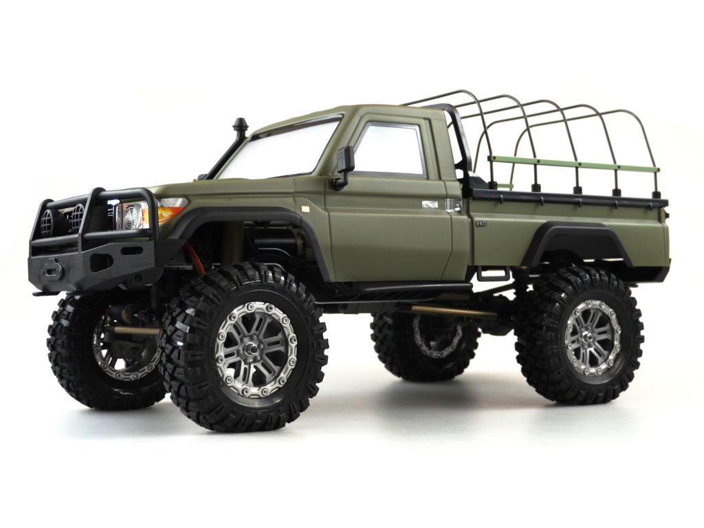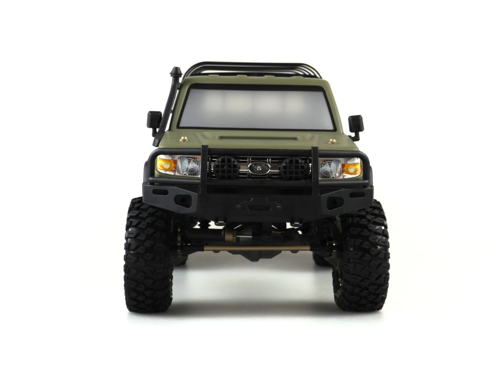 Tento špičkový profi crawler v měřítku 1:10 kombinuje skvělé technologie s brilantními jízdními vlastnostmi. Vybaven pevným kovovým rámem o tloušťce 5 mm, portálovými nápravami, kovovými spojkami, kovovými hnacími hřídeli, vysoce kvalitními plně chráněnými olejovými tlumiči s ochranou proti prachu, stejnosměrným motorem 550, tlumeným systémem řízení, diferenciály (přední/zadní), které lze individuálně zamknout pomocí vysílače a 2-rychlostní manuální převodovkou. Toto vozidlo je zcela novým vývojem a poprvé přináší na trh několik nových systémů.