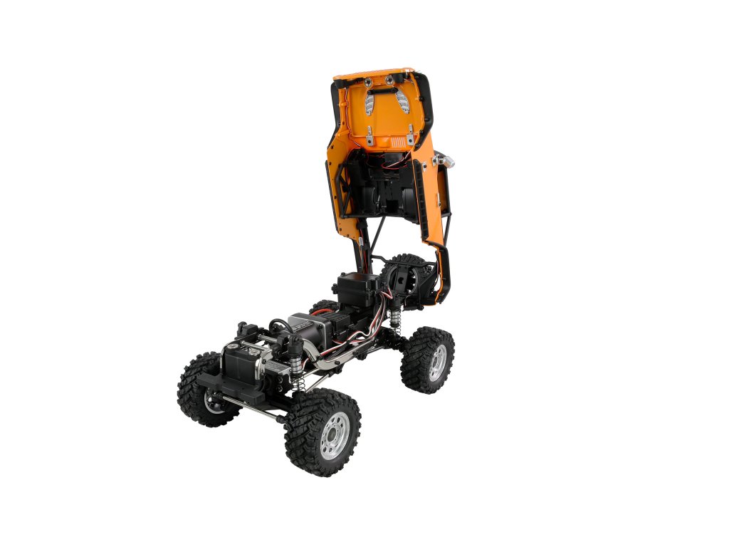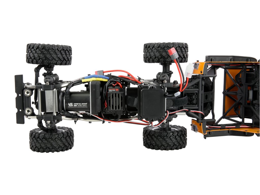 Verze RTR se dodává připravená k jízdě s dálkovým ovládáním, baterií a nabíjecím kabelem. Detailní vzhled v měřítku podtrhuje kvalitní hliníková karoserie, zatímco vodotěsný box přijímače a LED osvětlení vpředu a vzadu zajišťují realistické použití za každého počasí. Olejové tlumiče, kuličková ložiska, výkonné 20kg servo řízení s kovovými převody a měkké gumové pneumatiky zaručují optimální trakci a ovládání.