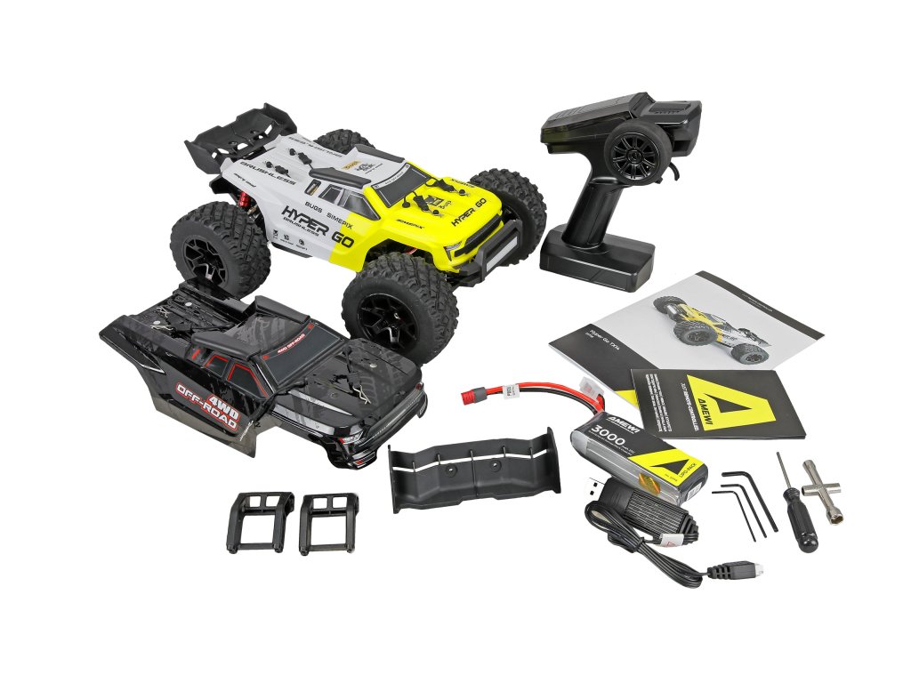 RC truggy Hyper Go TX14 je dodáván jako RTR sada (Ready-to-Run) včetně LiPo akumulátoru 2S 3000mAh a nabíjecího kabelu, takže je ihned připraven k jízdě.