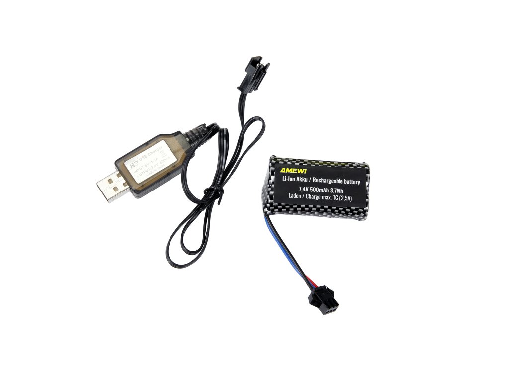 Akumulátor: Li-Ion, 2, 7,4 V, 500 mAh, 10C, kulaté články, SM/HBX 3-pin, 53 x 30 x 15 mm, 37 g