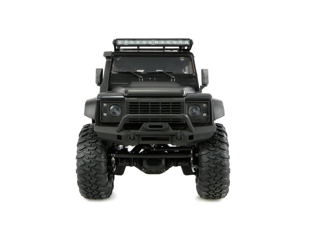 RC auto Mini-D90 Scale Crawler v měřítku 1:16 je malý, výkonný crawler, který přesvědčí promyšlenou technikou, jednoduchou elektronikou a robustní konstrukcí. Díky čtyřnásobně přepínatelnému LED osvětlení vpředu a vzadu, které se aktivuje jedním stisknutím tlačítka osvětlení, nabízí vynikající osvětlení zvolené trasy za soumraku, zatímco dodatečná LED střešní rampa, která lze přepínat v různých režimech (dvojitým rychlým stisknutím tlačítka osvětlení), zajišťuje realistický vzhled a dobrou viditelnost.