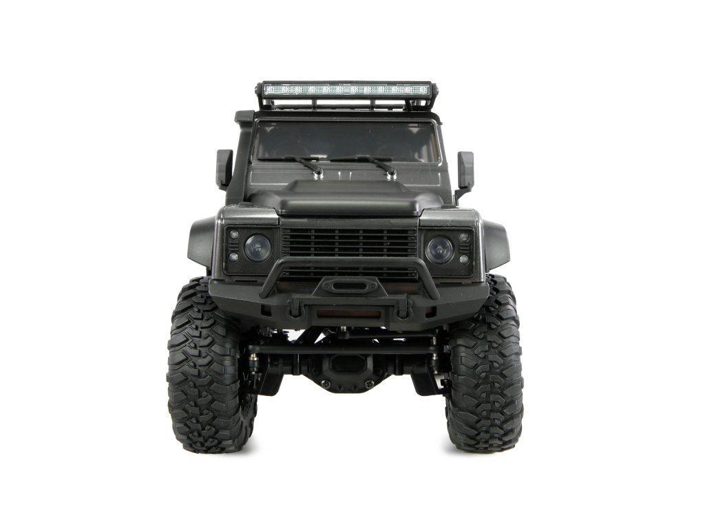 RC auto Mini-D90 Scale Crawler v měřítku 1:16 je malý, výkonný crawler, který přesvědčí promyšlenou technikou, jednoduchou elektronikou a robustní konstrukcí. Díky čtyřnásobně přepínatelnému LED osvětlení vpředu a vzadu, které se aktivuje jedním stisknutím tlačítka osvětlení, nabízí vynikající osvětlení zvolené trasy za soumraku, zatímco dodatečná LED střešní rampa, která lze přepínat v různých režimech (dvojitým rychlým stisknutím tlačítka osvětlení), zajišťuje realistický vzhled a dobrou viditelnost.