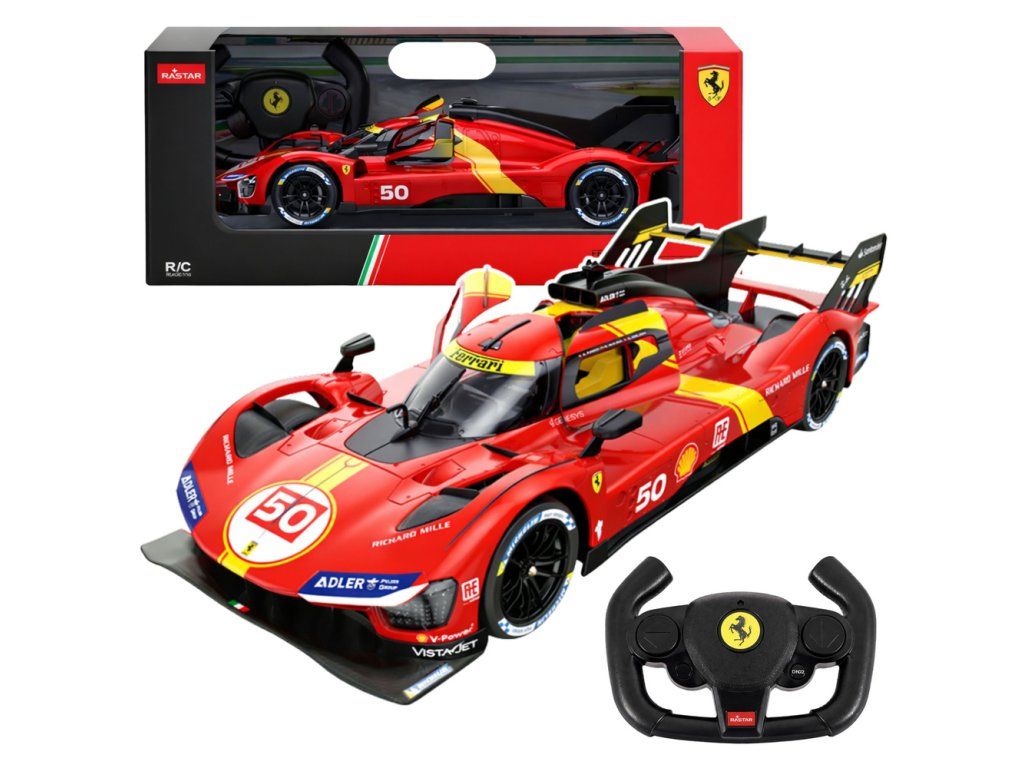 RC model Ferrari 499P od renomované značky Rastar přináší detailní zpracování jednoho z nejznámějších vytrvalostních závodních vozů současnosti. Tento model v měřítku 1:24 kombinuje realistický vzhled, kvalitní zpracování a jednoduché ovládání, díky čemuž je vhodný jak pro zábavu, tak i jako sběratelský kousek.