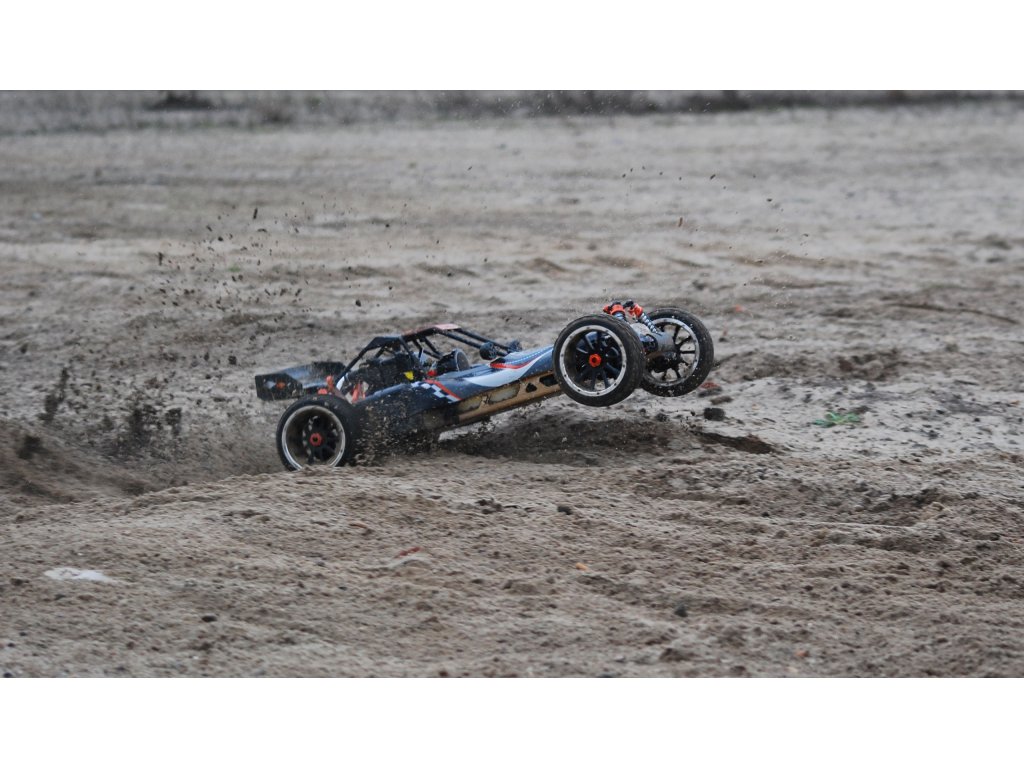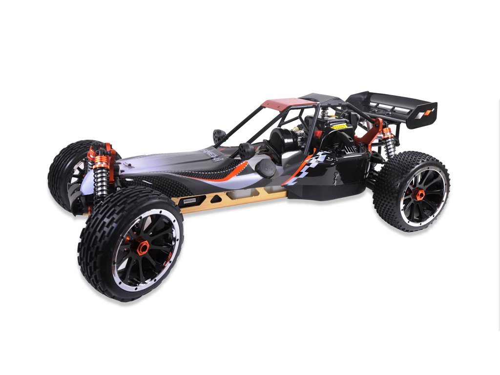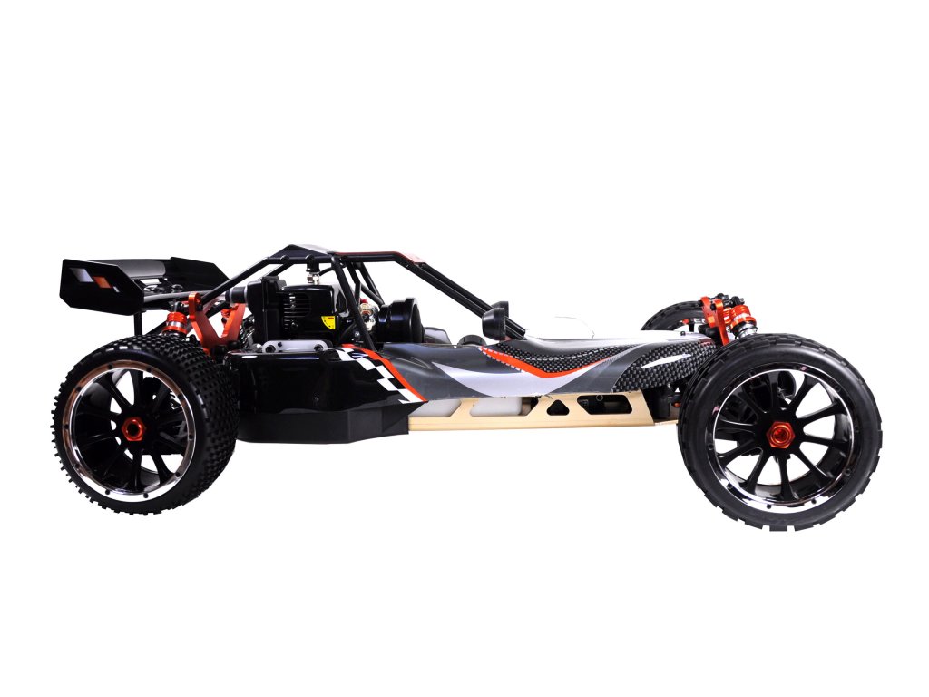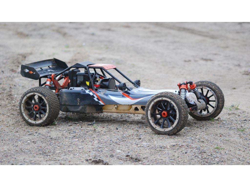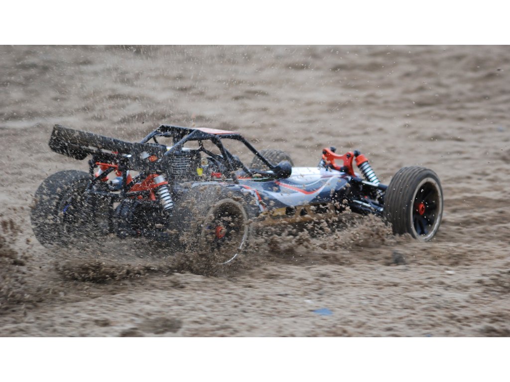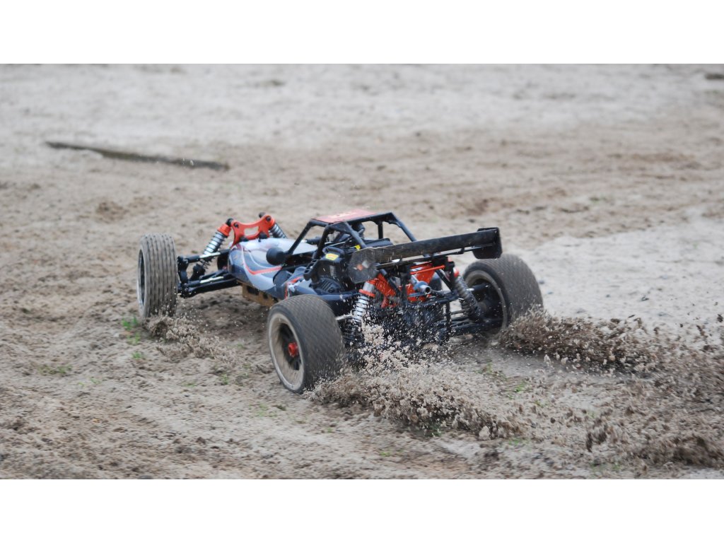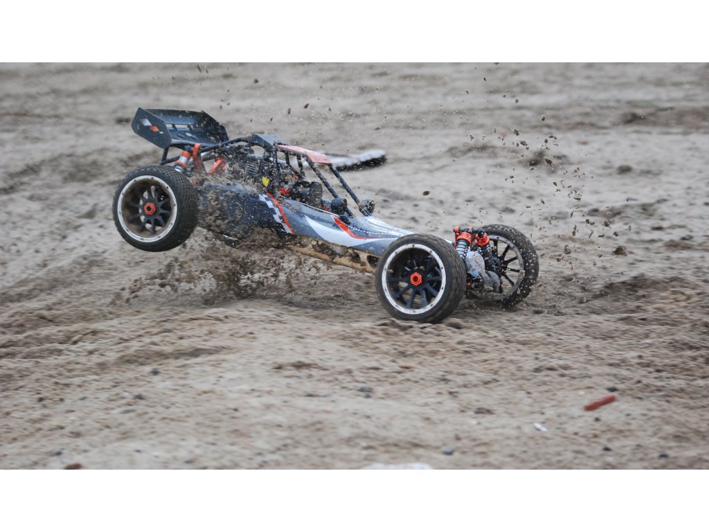 Pitbull X je naše oblíbená pouštní bugina s 2-taktním benzínovým motorem. Díky velkému objemu nádrže 700 ml jede bugina na jednu plnou nádrž přibližně 45 minut. Šasi vyrobené z 5 mm silného hliníku, hliníkové tlumiče vpředu a vzadu a hliníkové vzpěry dělají z Pitbulla X velmi robustního závodníka. S novým motorem o objemu 32 ccm nyní verze 5.2 získala ještě větší výkon.