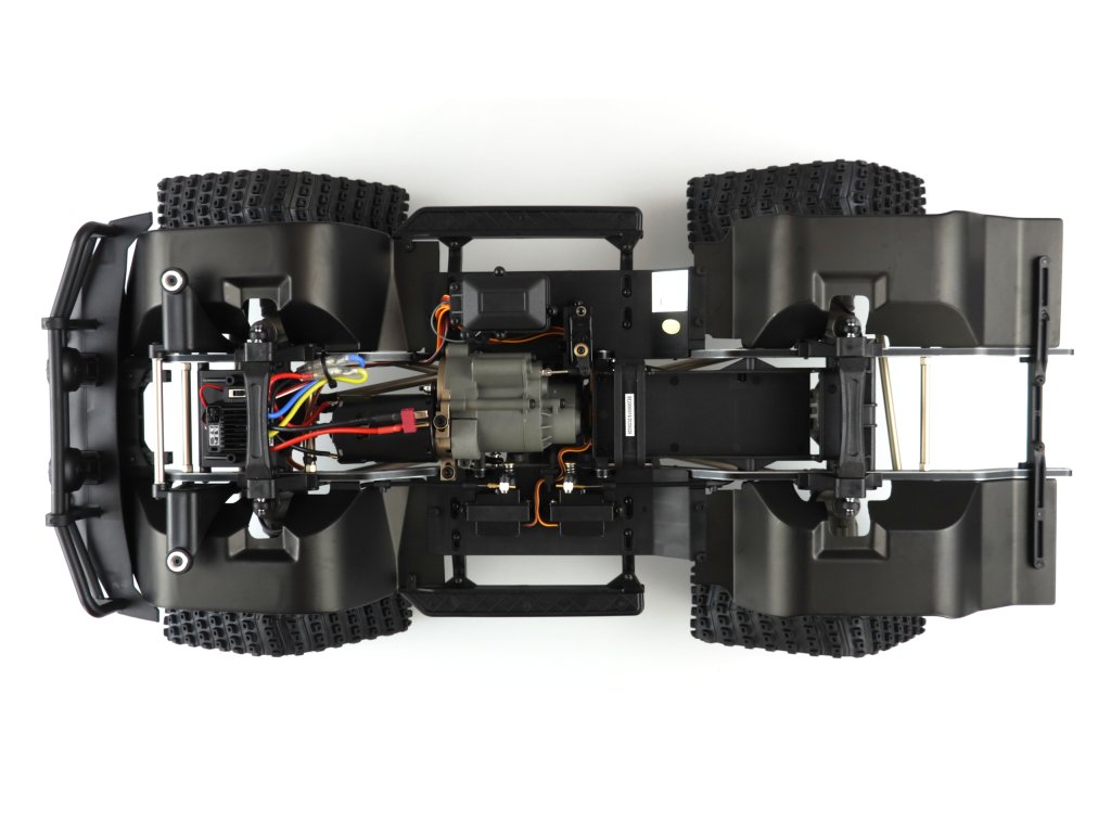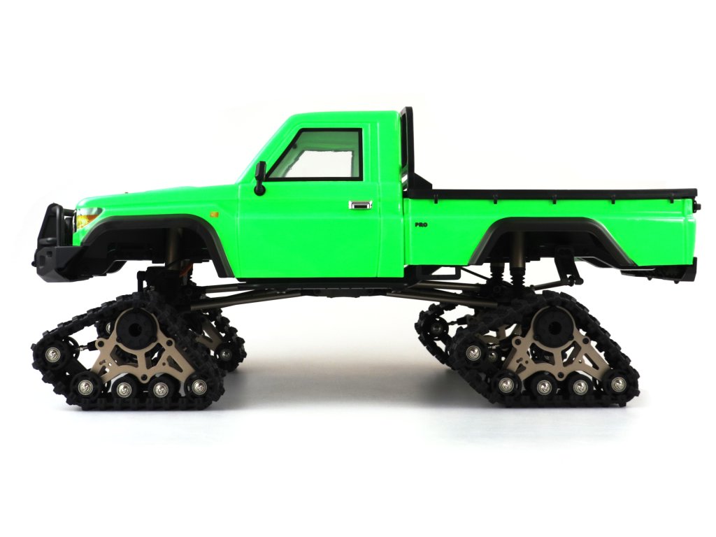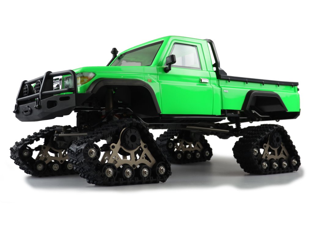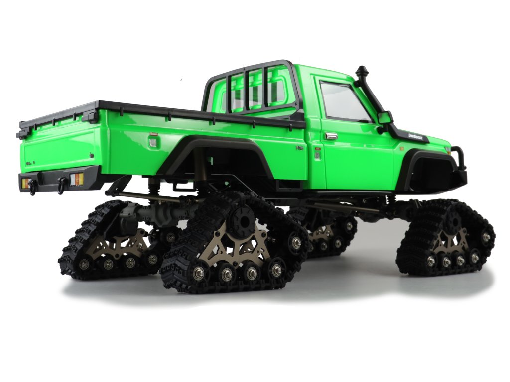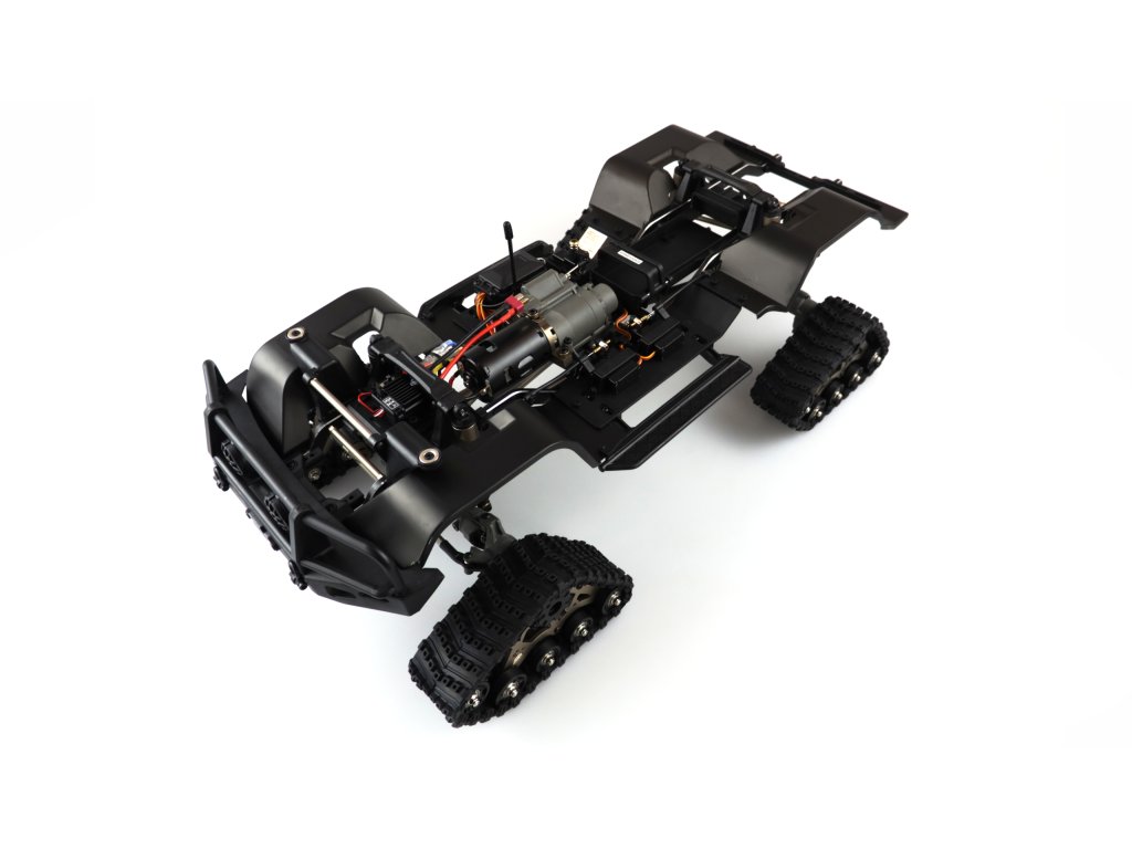 Tento špičkový crawler v měřítku 1:8 kombinuje supertechnologii s vynikajícími jízdními vlastnostmi. Toto vozidlo je vybaveno pevným kovovým rámem o tloušťce 5 mm, portálovými nápravami, hliníkovými vzpěrami, kovovými hnacími hřídeli, vysoce kvalitními plně chráněnými olejovými tlumiči s ochranou proti prachu, 650 stejnosměrným motorem 23T, odpruženým systémem řízení, individuálně uzamykatelnými diferenciály (přední / zadní) prostřednictvím vysílače a dvoustupňovou manuální převodovkou. Toto vozidlo představuje zcela nový vývoj a poprvé na trh uvádí řadu inovativních systémů. Dodávaný pásový podvozek zajišťuje trakci a pohon na jakémkoli povrchu!