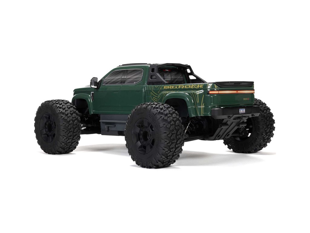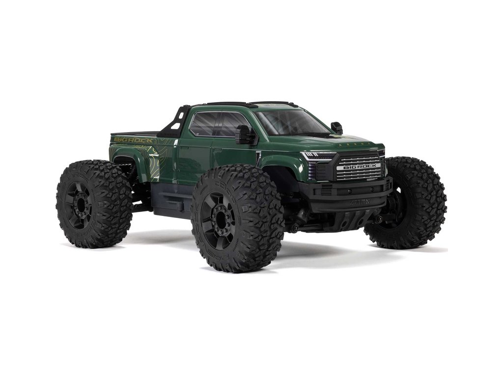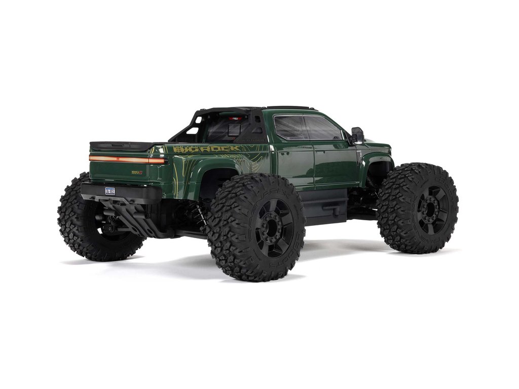 RC model auta Arrma Big Rock 223S BLX typu Monster truck s náhonem 4WD, nezávislým zavěšením, olejovými tlumiči a výkonným střídavým pohonem, dosáhne rychlosti až 80 km/h. To vše za dostupnou cenu pro takto výkonný model. Výborné jízdní vlastnosti zajišťuje pohon všech kol se středovým a nápravovými diferenciály. Obsažena je exkluzivní stabilizace jízdy DSC. RC auto je určeno pro děti, dospělé, začátečníky i zkušené jezdce, kteří získají hotový, odolný a rychlý model. Bezsponková karoserie s dlouhou korbou je ztělesněním agresivního stylu nákladních pick-up vozidel.