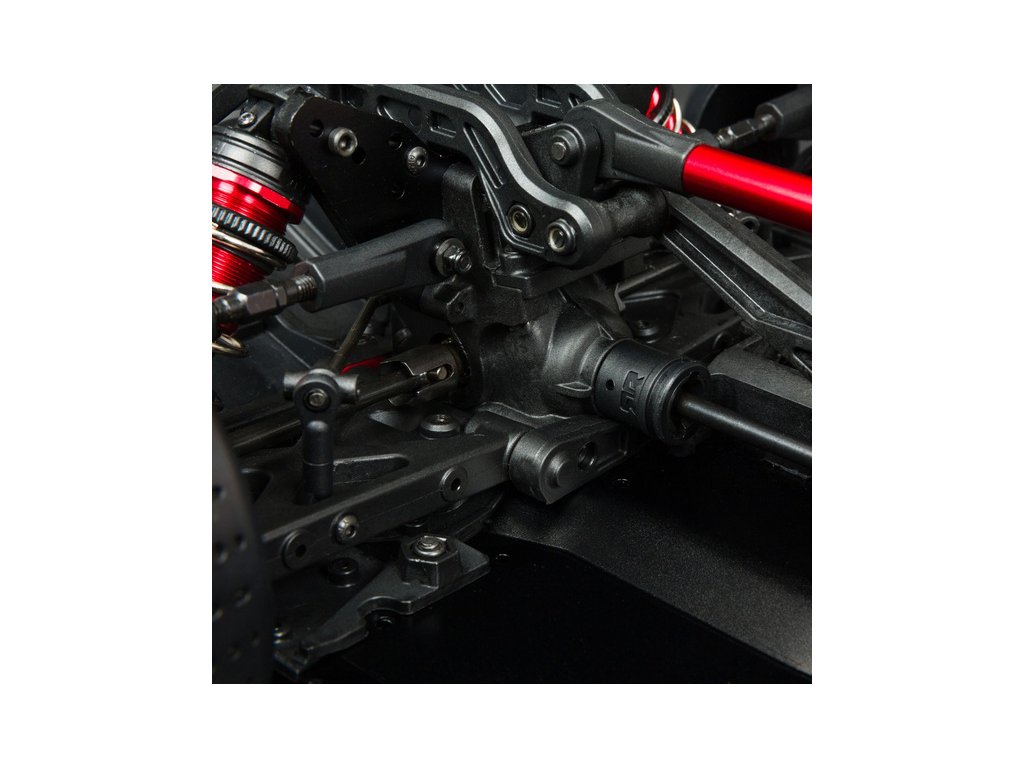 Základem je šasí, které tvoří 3mm hliníkový eloxovaný podvozek se středovou výztuhou pro zvýšení pevnosti a tuhosti. Vysoce výkonný pohon 4X4 je vybaven odolnými ocelovými hnacími hřídelemi a celokovovými diferenciály. Centrální převodovku lze odstranit vyjmutím pouze pěti šroubů a významně tak urychlit servis. Posuvná lišta motorového lože umožňuje rychlý a snadný přístup k motoru. Velké nárazníky, olejové tlumiče na černě eloxovaných předních a zadních věžích udržují pneumatiky dBoots® HoonsdBoots® Hoons fialový pevně usazené na trati. Pneumatiky jsou namontovány na 5-paprskových discích s mimořádně odolnými náboji.