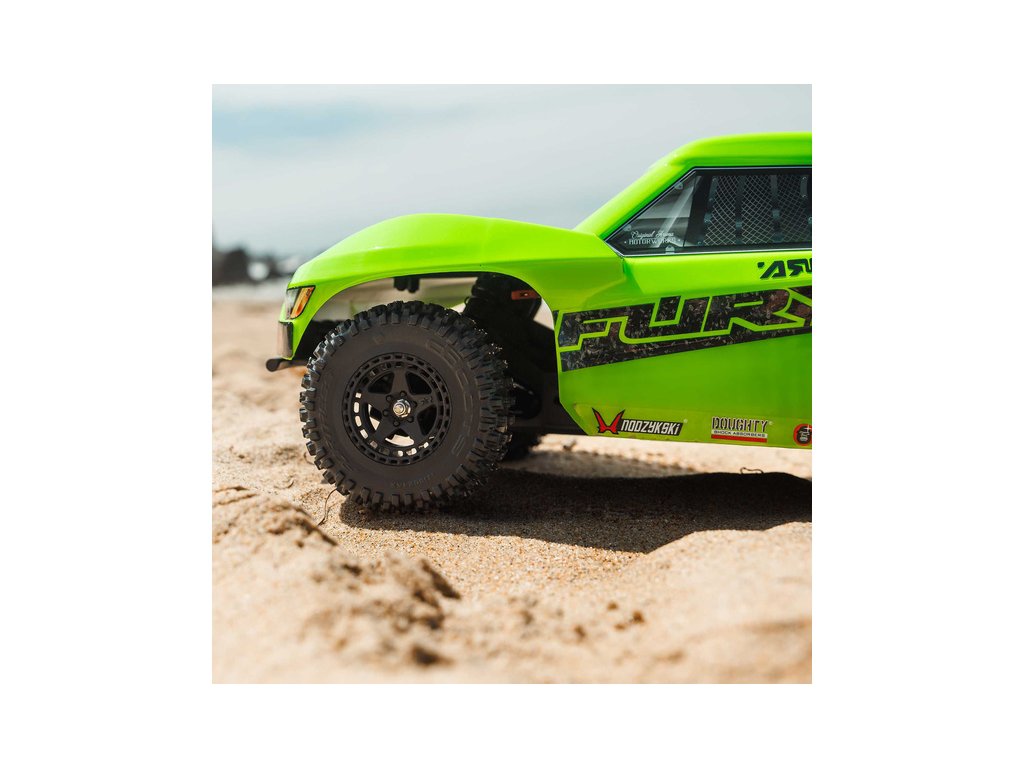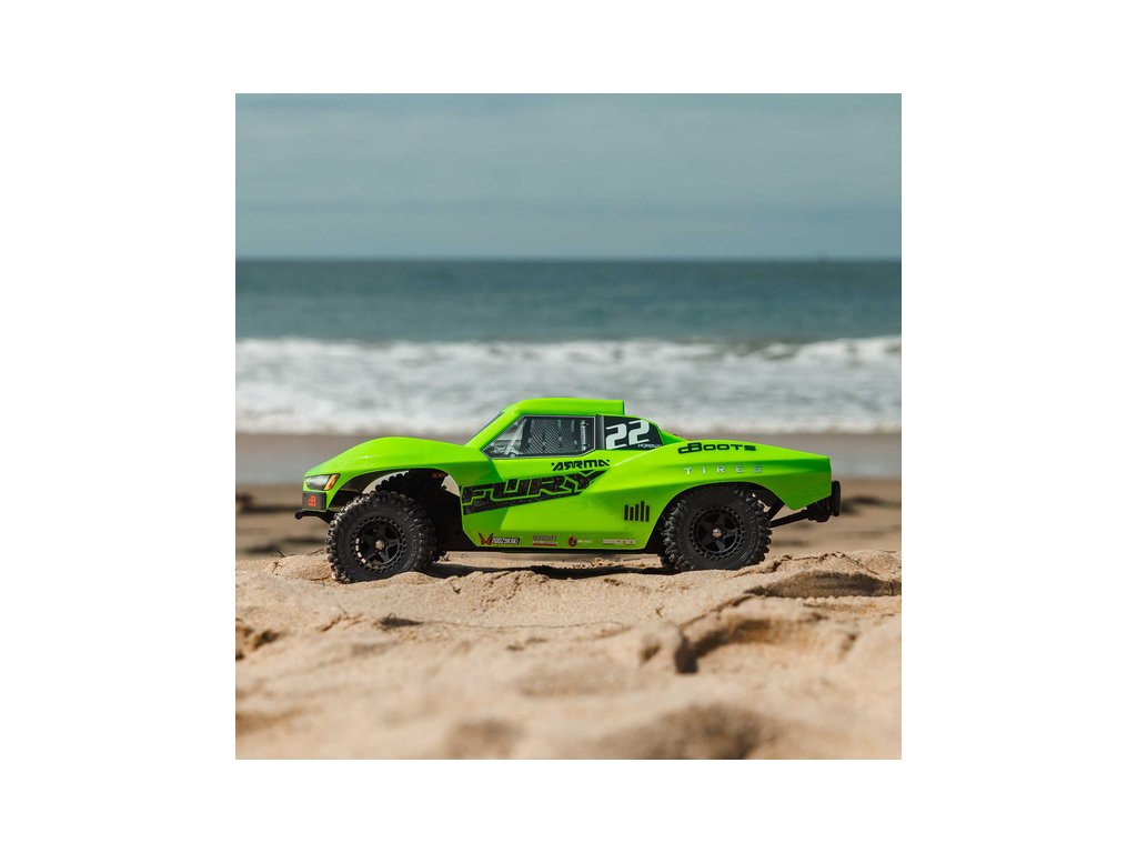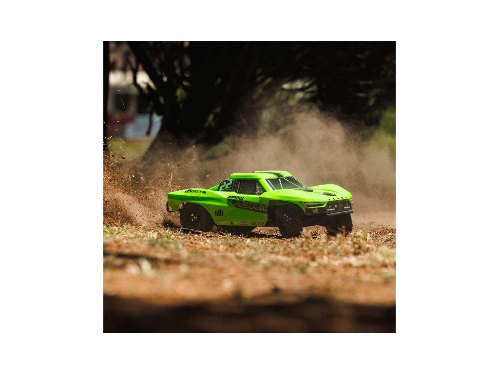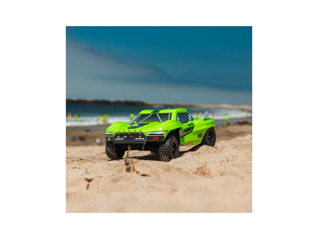 RC model Arrma Fury Mega 550 1:10 RTR Basic je cenově dostupné auto na dálkové ovládání typu Short Course s náhonem 2WD, nezávislým zavěšením, olejovými tlumiči, proporcionálním řízením a stejnosměrným motorem. RC souprava SLT 2.4 GHz.