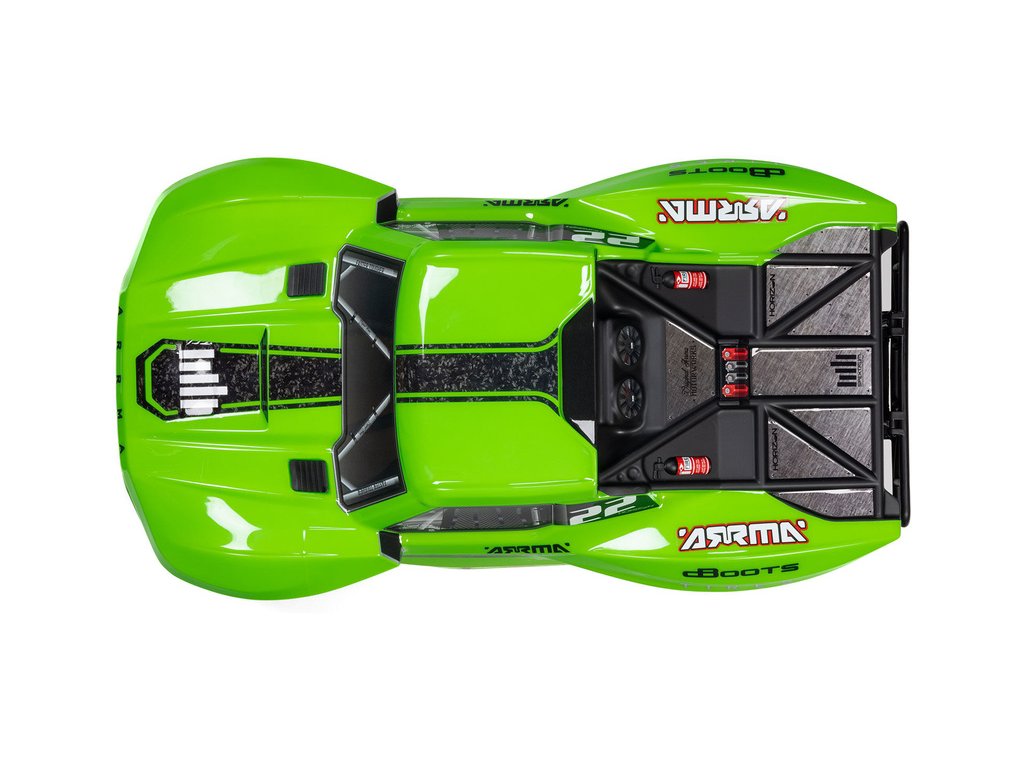 Kompozitní šasi je vyrobeno s odolností ARRMA. Má účelnou konstrukci s pevným úzkým tělem, které je ze spodní strany rovné, aby se nezadrhávalo o překážky.