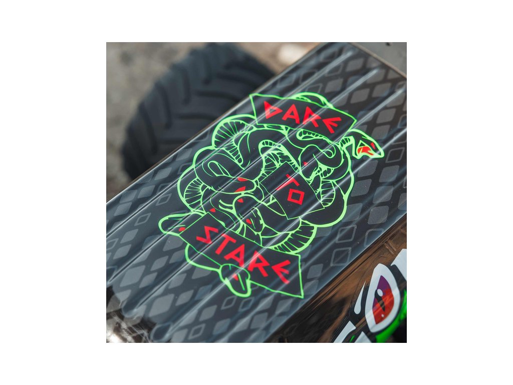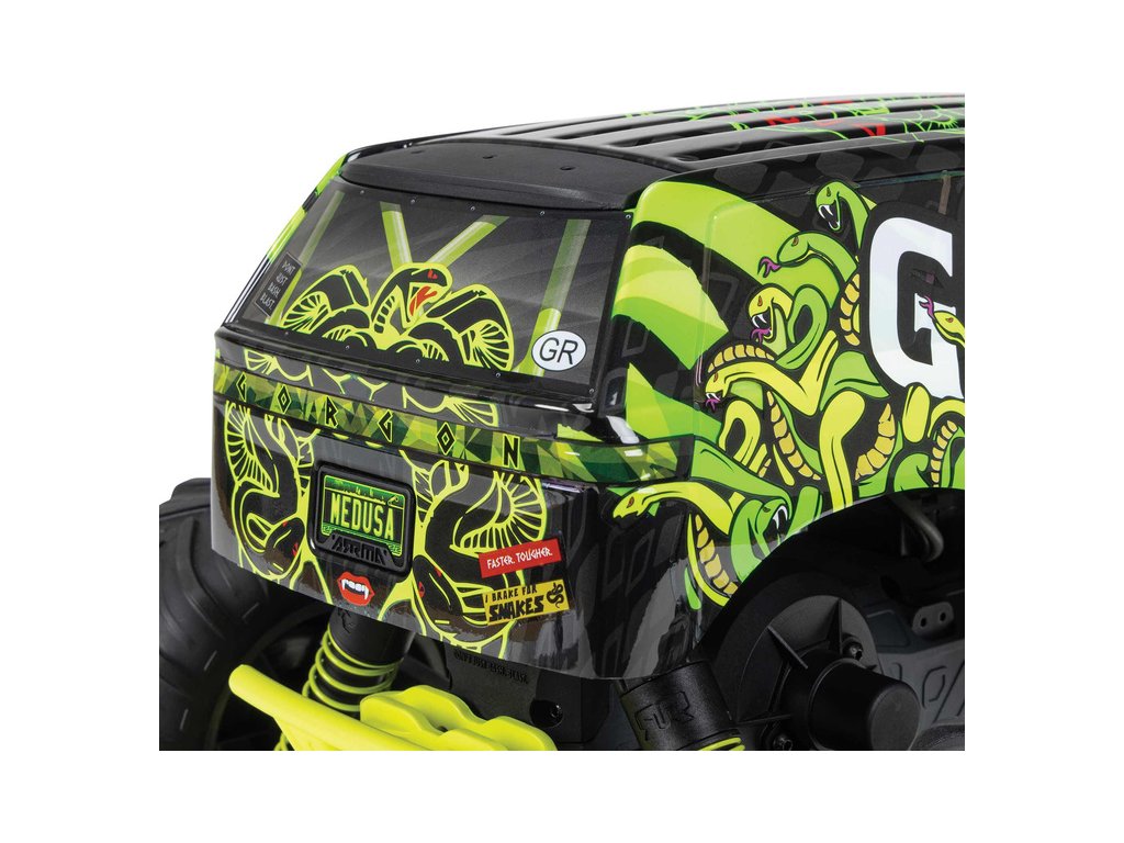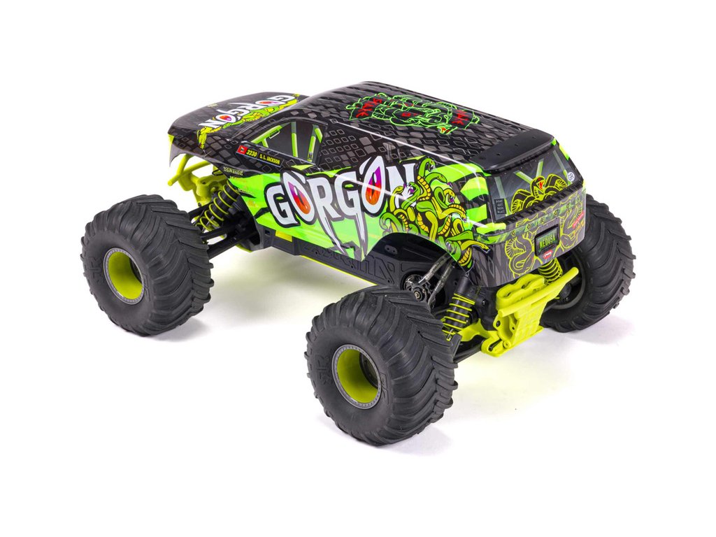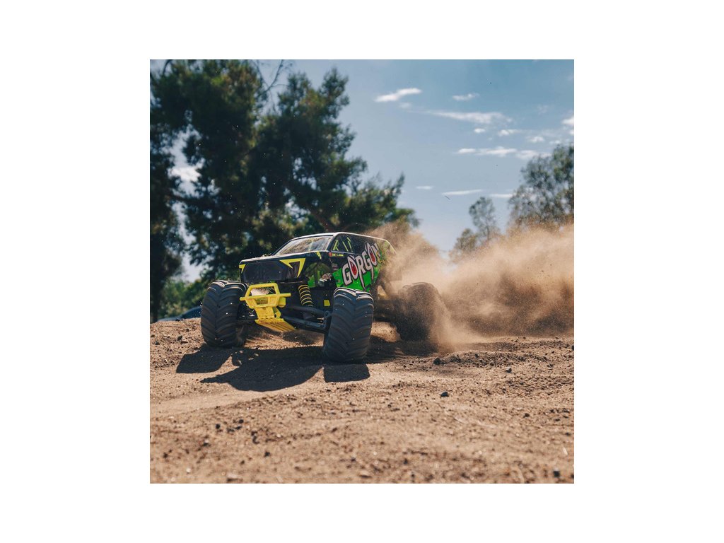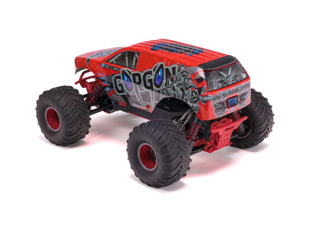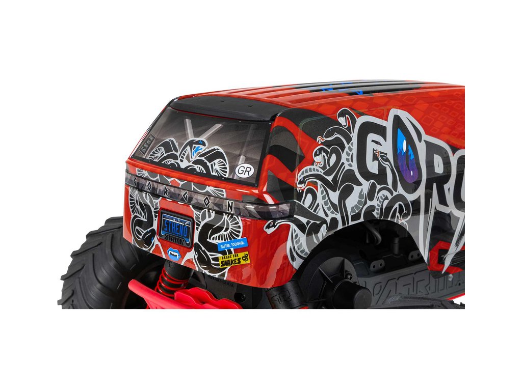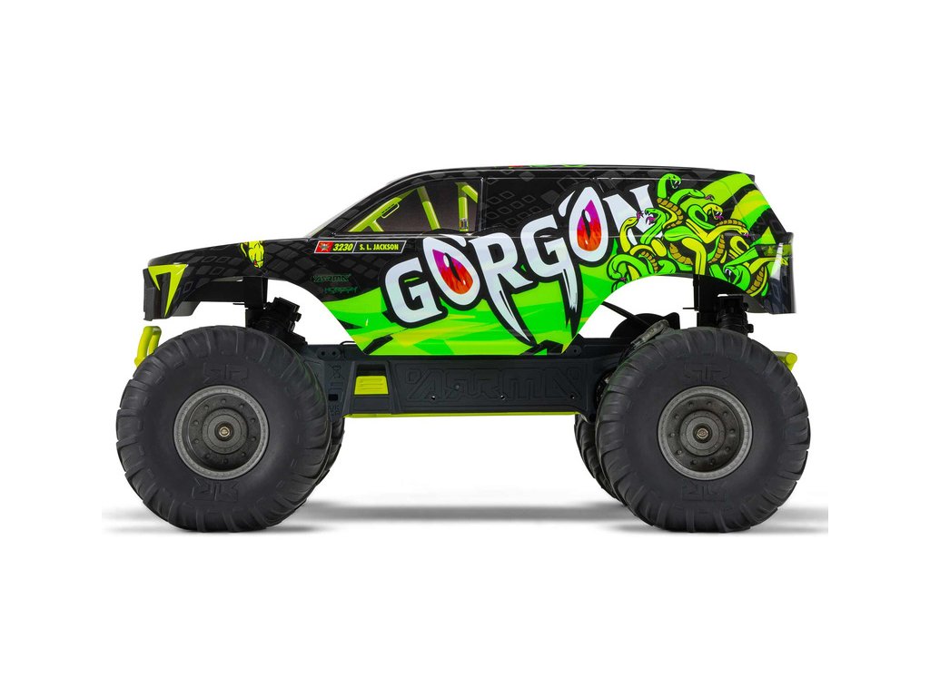 Ihned po vybalení přitáhne Gorgon vaši pozornost díky svému originálnímu vzhledu. Karoserie je z výroby dokončena ve velmi atraktivním moderním stylu a je barevně sladěna s jednotlivými díly šasi, jako jsou pružiny, přihrádka na baterii, kluzné desky a nárazníky. Osvědčená technologie ARRMA má díky kompozitnímu šasi vysokou odolnost. Nezávislé zavěšení, olejové tlumiče a nastavitelná světlá výška zajišťují komfortní jízdu. Pro nezastavitelnou trakci přenáší 2WD převodovka výkon ze stejnosměrného motoru MEGA 550 do masivních pneumatik dBoots ® Chevron o rozměru 130mm, nalepených na nylonových discích 57mm. Použité kovové převody jsou dostatečně odolné i pro případný upgrade na střídavý pohon.
