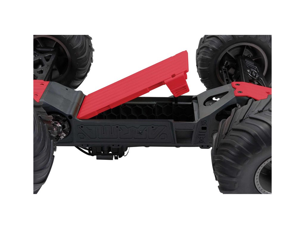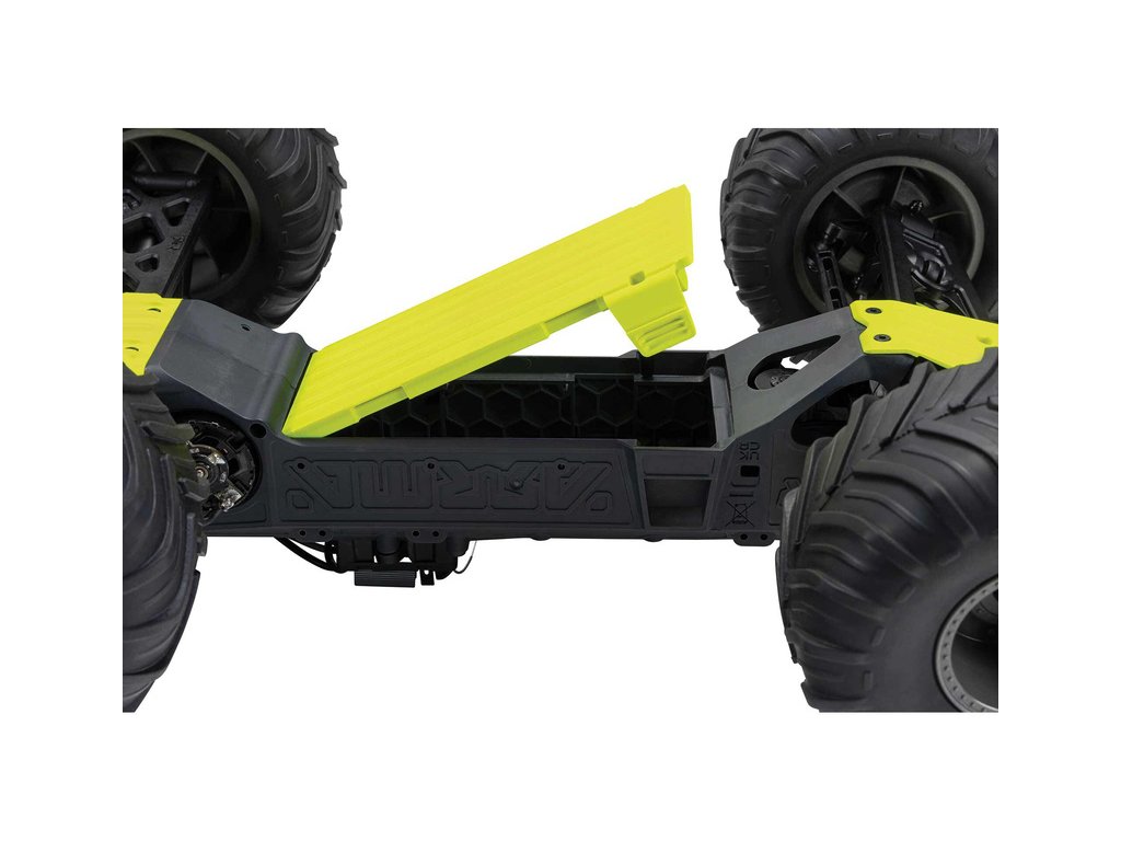 Kompozitní šasi je vyrobeno s odolností ARRMA. GORGON MT má účelnou konstrukci s pevným úzkým šasi, nezávislým zavěšením a olejem plněnými tlumiči pro hladké absorbování nerovností. Přihrádka pro baterii ze spodní strany šasi umožňuje výměnu akumulátoru, aniž byste museli sundávat karoserii.