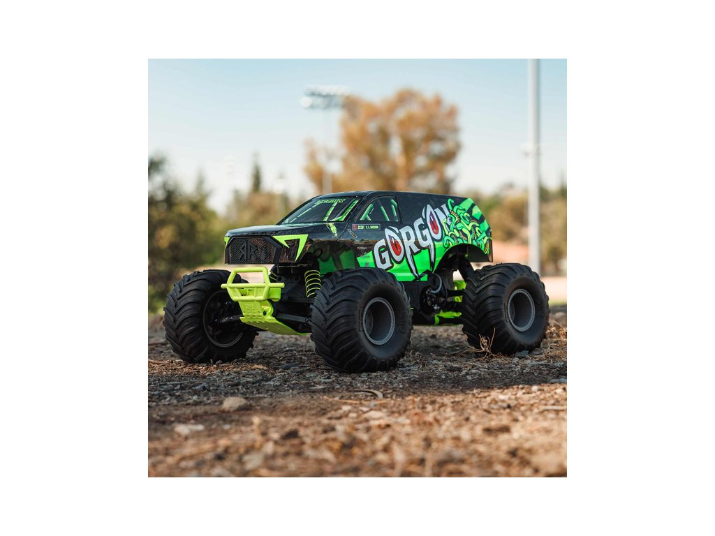 Auto na dálkové ovládání Arrma Gorgon 1:10 Smart RTR, je cenově dostupný RC model typu Monster Truck s náhonem 2WD, nezávislým zavěšením, olejovými tlumiči, proporcionálním řízením a stejnosměrným motorem. RC souprava SLT 2.4 GHz. V balení NiMH baterie a USB nabíječ.