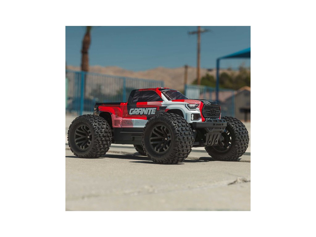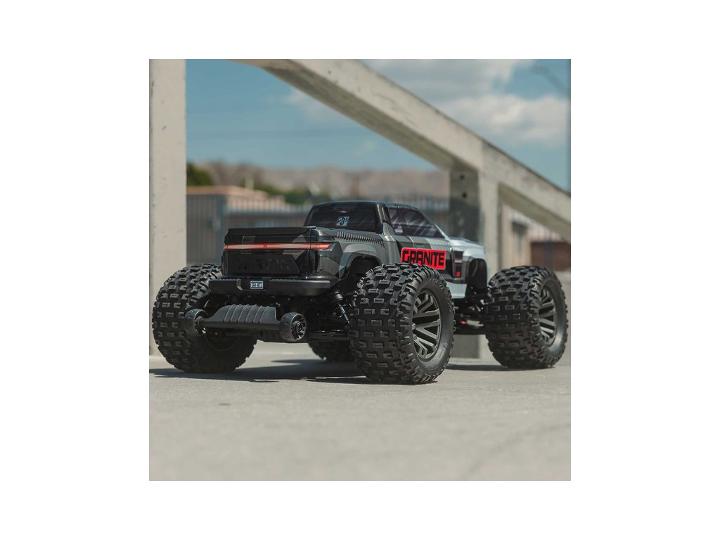 Arrma Granite je výkonnostně všestranný model a může postupně růst s vašimi řidičskými schopnostmi. Pro začátek můžete model provozovat na 2S LiPo akumulátor a omezit výkon plynu na 50%. Později můžete zvýšit plyn na 75% a 100% a dokonce do modelu připojit 3S LiPo akumulátor a dosáhnout rychlosti až 80 km/h.