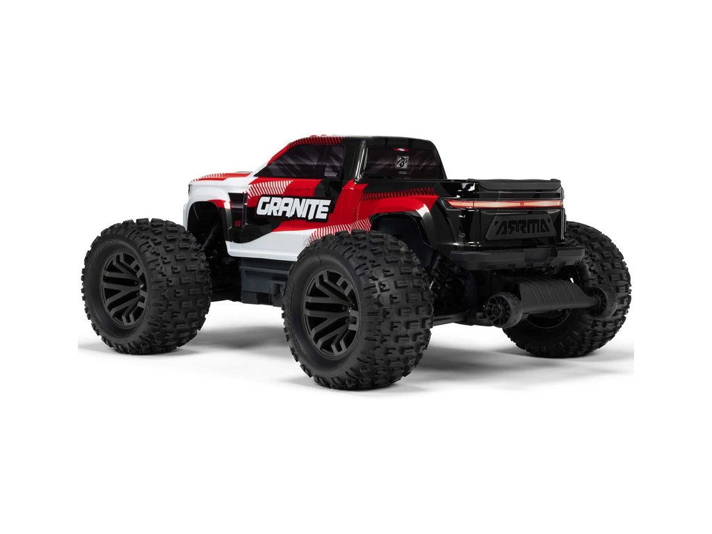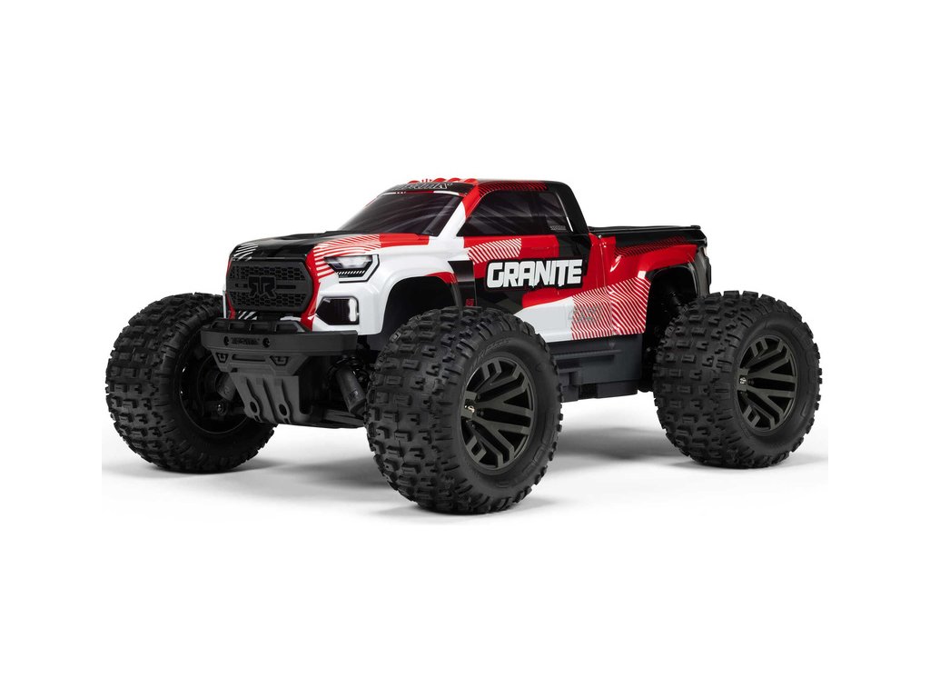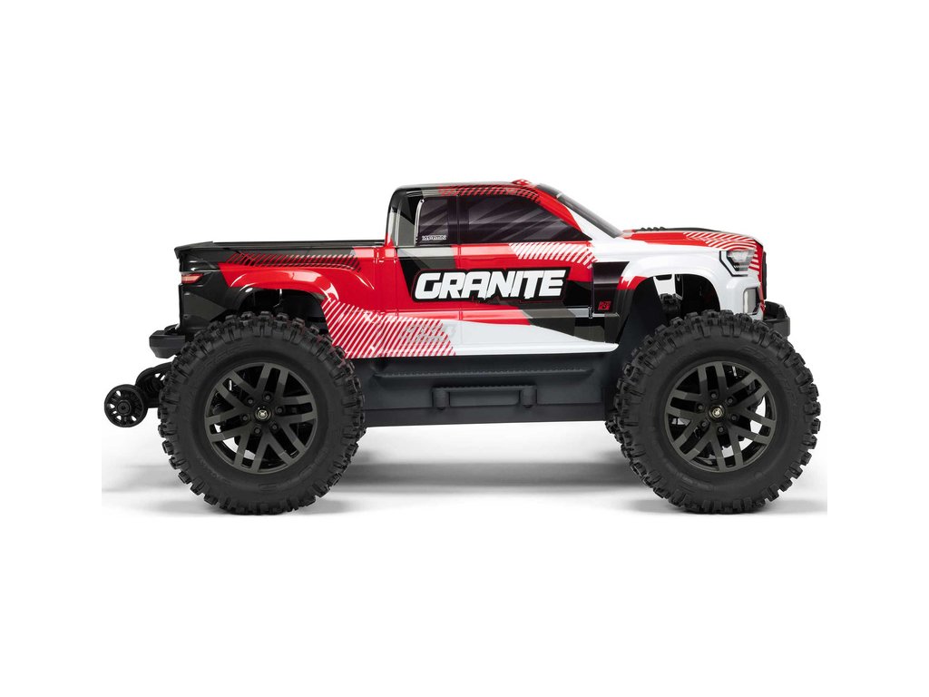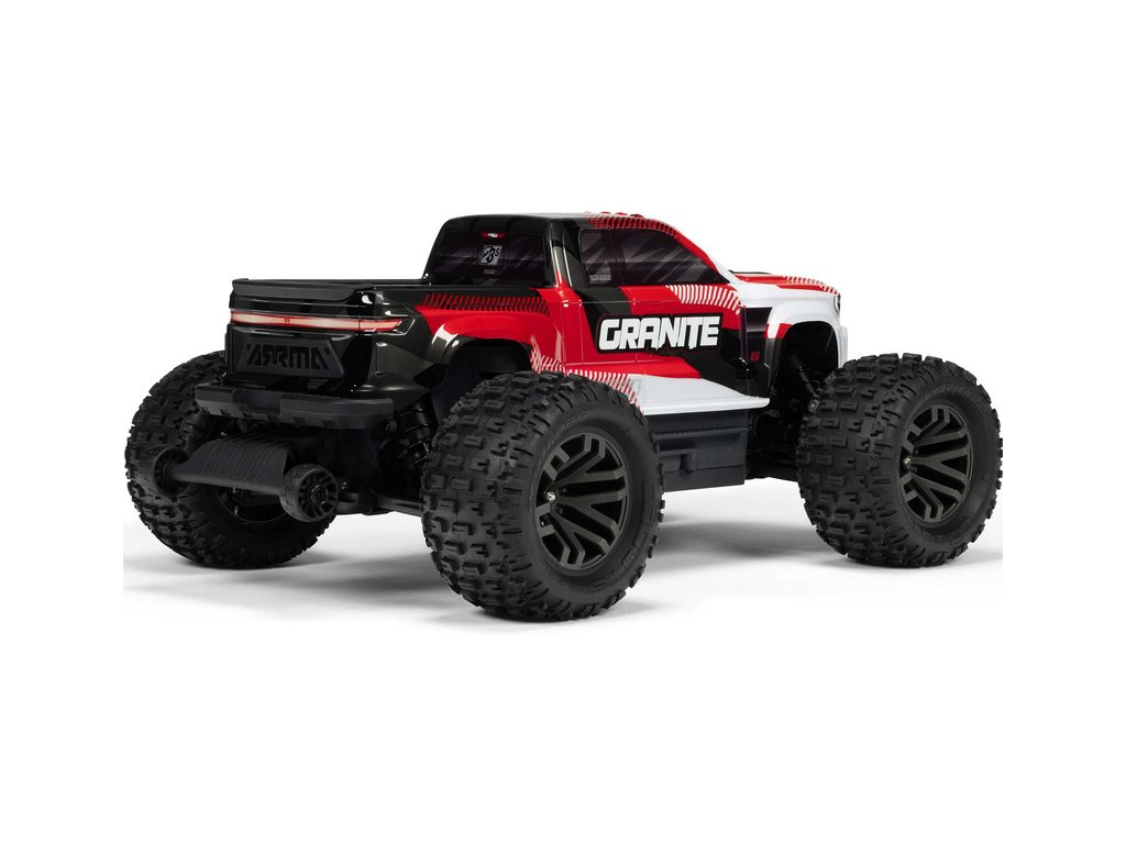 RC model auta Arrma Granite 223S BLX typu Monster truck s náhonem 4WD, nezávislým zavěšením, olejovými tlumiči a výkonným střídavým pohonem, dosáhne rychlosti až 80 km/h. To vše za dostupnou cenu pro takto výkonný model. Výborné jízdní vlastnosti zajišťuje pohon všech kol se středovým a nápravovými diferenciály. Obsažena je exkluzivní stabilizace jízdy DSC. RC auto je určeno pro děti, dospělé, začátečníky i zkušené jezdce, kteří získají hotový, odolný a rychlý model. To vše s agresivním vzhledem karoserie se skrytým bezsponkovým systémem uchycení.