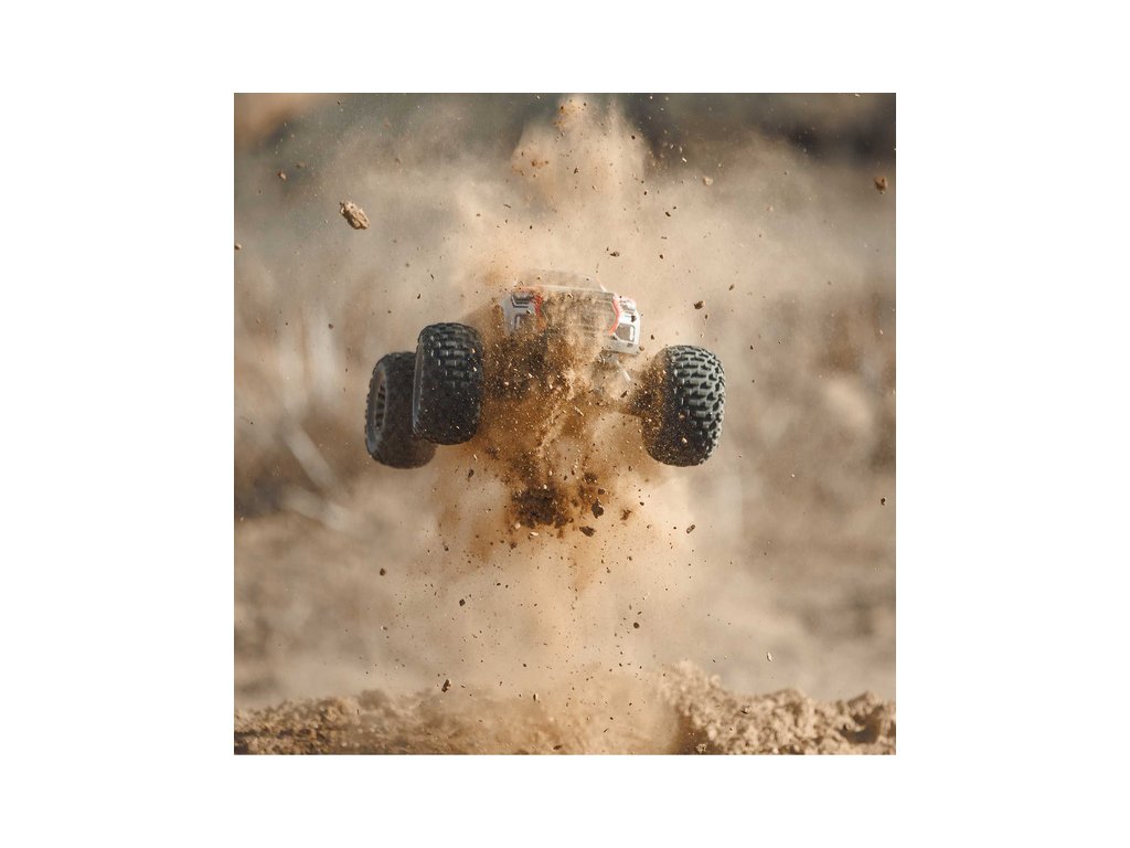 Osvědčená odolná platforma ARRMA® 4X4, vám umožní jezdit vysokou rychlostí téměř v jakémkoli prostředí - v terénu, na šotolině a trávě, na parkovištích i po zpevněných a asfaltových površích. Odolnost šasí vychází ze silného kompozitového podvozku, s prodlouženou výškou chráničů nečistot. Použité kovové převody jsou dostatečně odolné pro střídavý pohon. Výkon je distribuován na jednotlivá kola pomocí přední, zadního a středového diferenciálu. Maximální trakci zajišťují osvědčené pneumatiky dBoots. Vysílač Spektrum SLT poskytuje bezpečný provoz bez výpadků, pro bezstarostnou jízdu jsou na modelu použity voděodolné* komponenty - regulátor s přijímače Spektrum 2-v-1 80A a servo řízení Spektrum S662 s vysokým točivým momentem a kovovými převody.