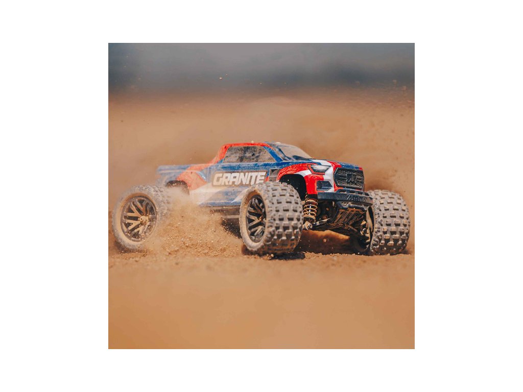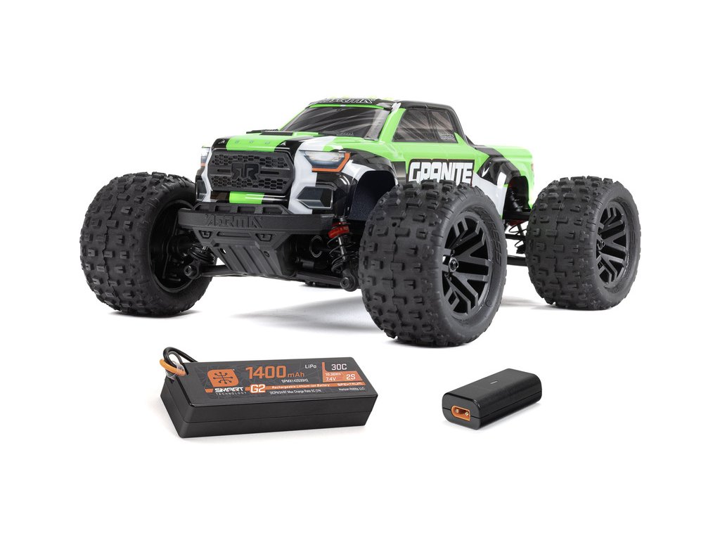 Zábavný a skladný je RC model auta Monster Truck Arrma Granite Grom v měřítku 1:18, s náhonem 4WD, funkcemi Smart a v provedení RTR. Je precizně zkonstruován podle stejně vysokých standardů jako větší model ARRMA Granite, včetně bezsponkové karosérie. Je kompletně připraven k jízdě s baterií a nabíječem.