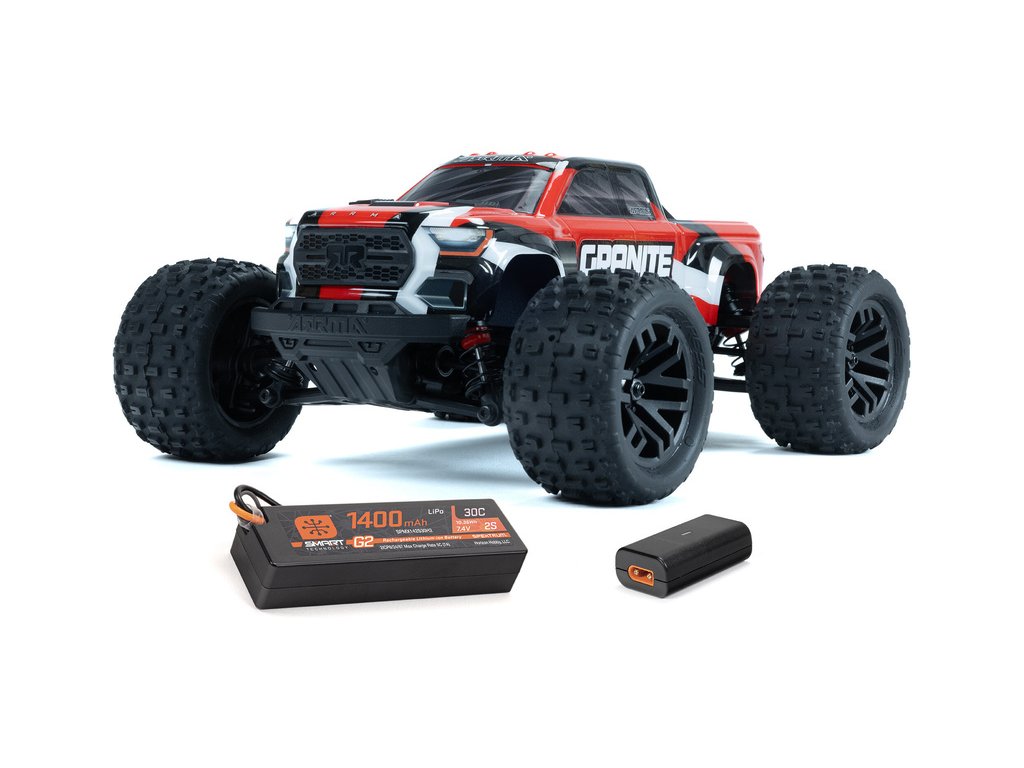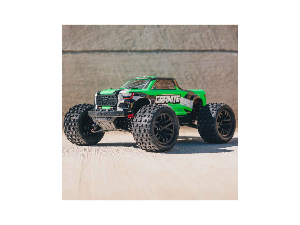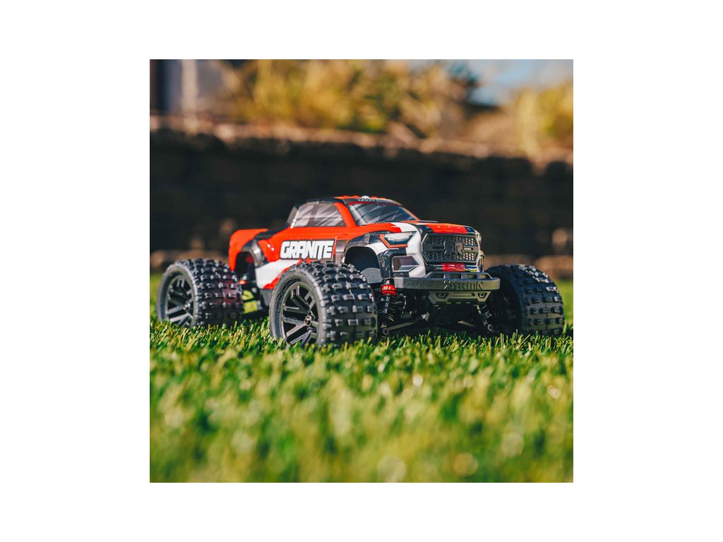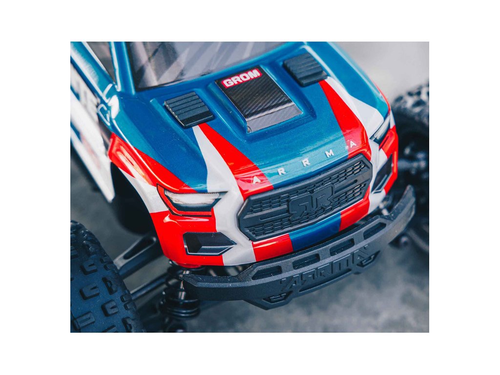 Zábavný a skladný je RC model auta Monster Truck Arrma Granite Grom v měřítku 1:18, s náhonem 4WD, funkcemi Smart a v provedení RTR. Je precizně zkonstruován podle stejně vysokých standardů jako větší model ARRMA Granite, včetně bezsponkové karosérie. Je kompletně připraven k jízdě s baterií a nabíječem.