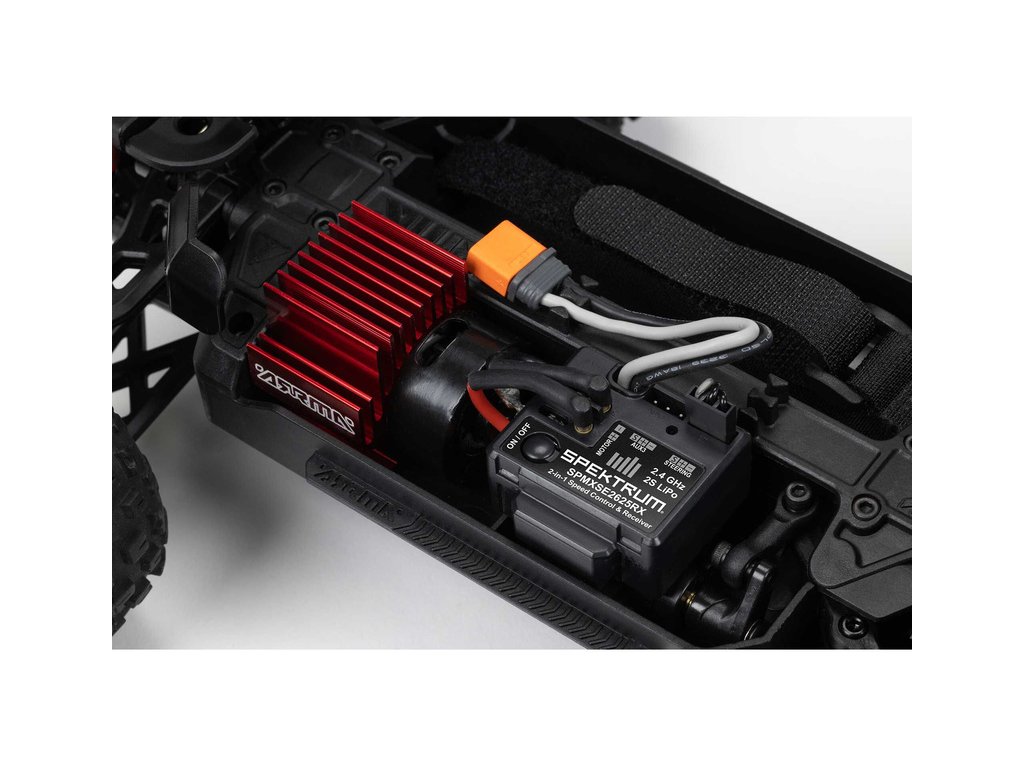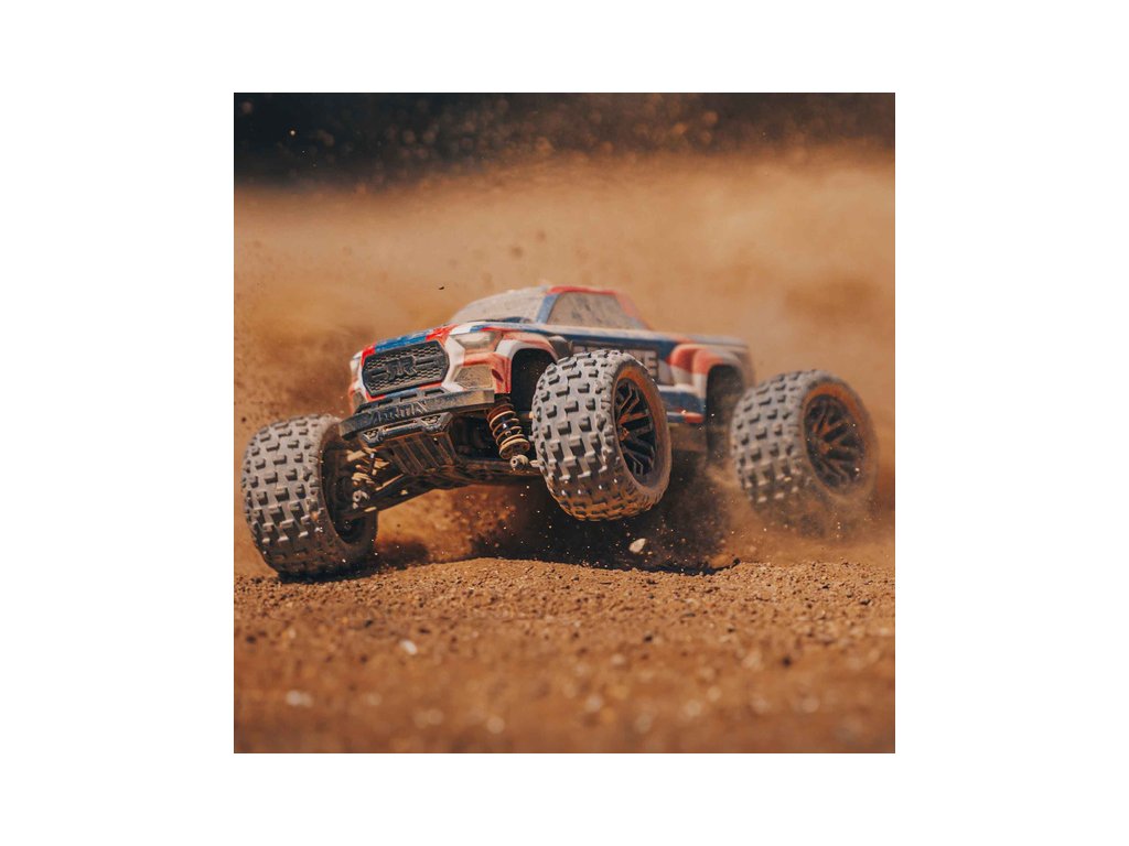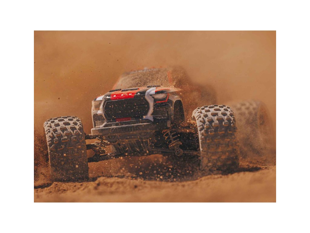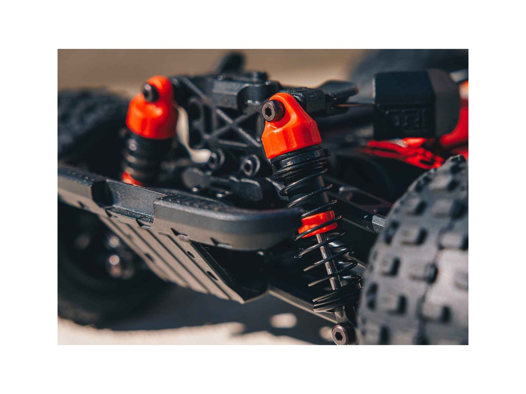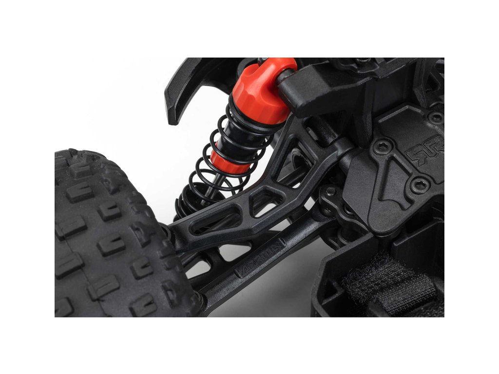 Na rozdíl od jiných výrobců, nedělá ARRMA u menších modelů žádné kompromisy. Model má inovativní bezsponkové upevnění karosérie, které udržuje karosérii bezpečně upevněnou, ale snadno se přitom sundává. Mezi jinými menšími modely aut vyčnívá silou, skvělou ovladatelností a schopnostmi, které potřebujete abyste mohli svými kaskadérskými ohromit ostatní.
